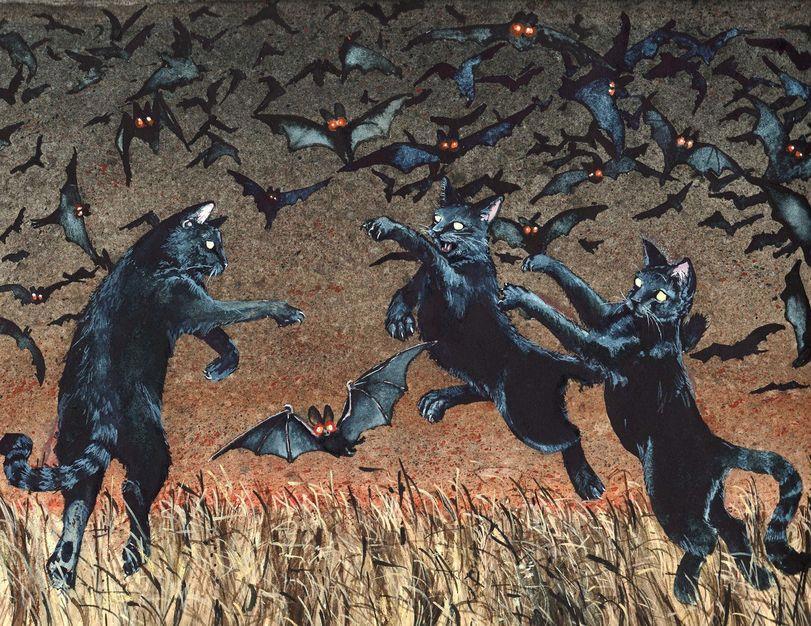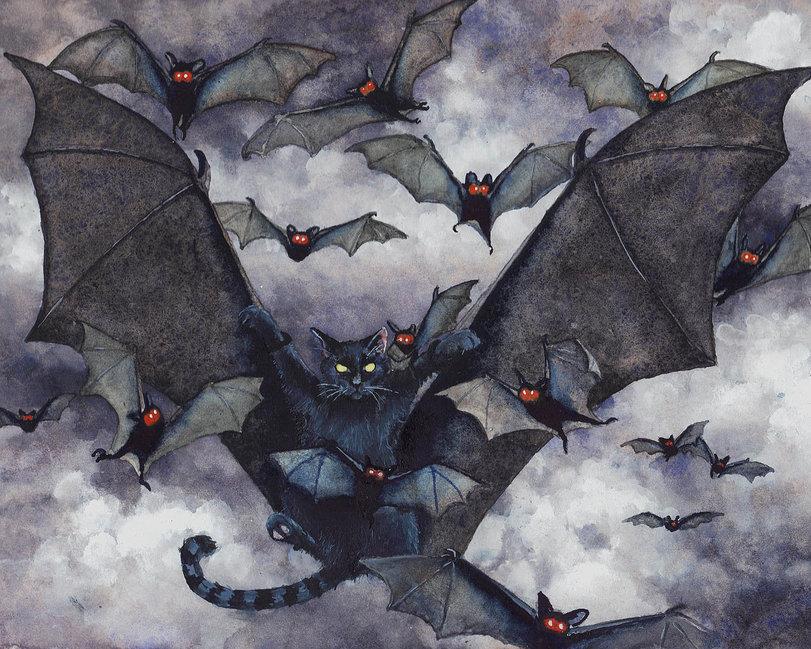 Стишок не мой, попался на просторах интернета без указания авторства. Летучих котов не бывает? Ой ли?! У писателей фантазеров бывает всё! А художники фантазёры все это умеют нарисовать. Если у котов нет крыльев то...