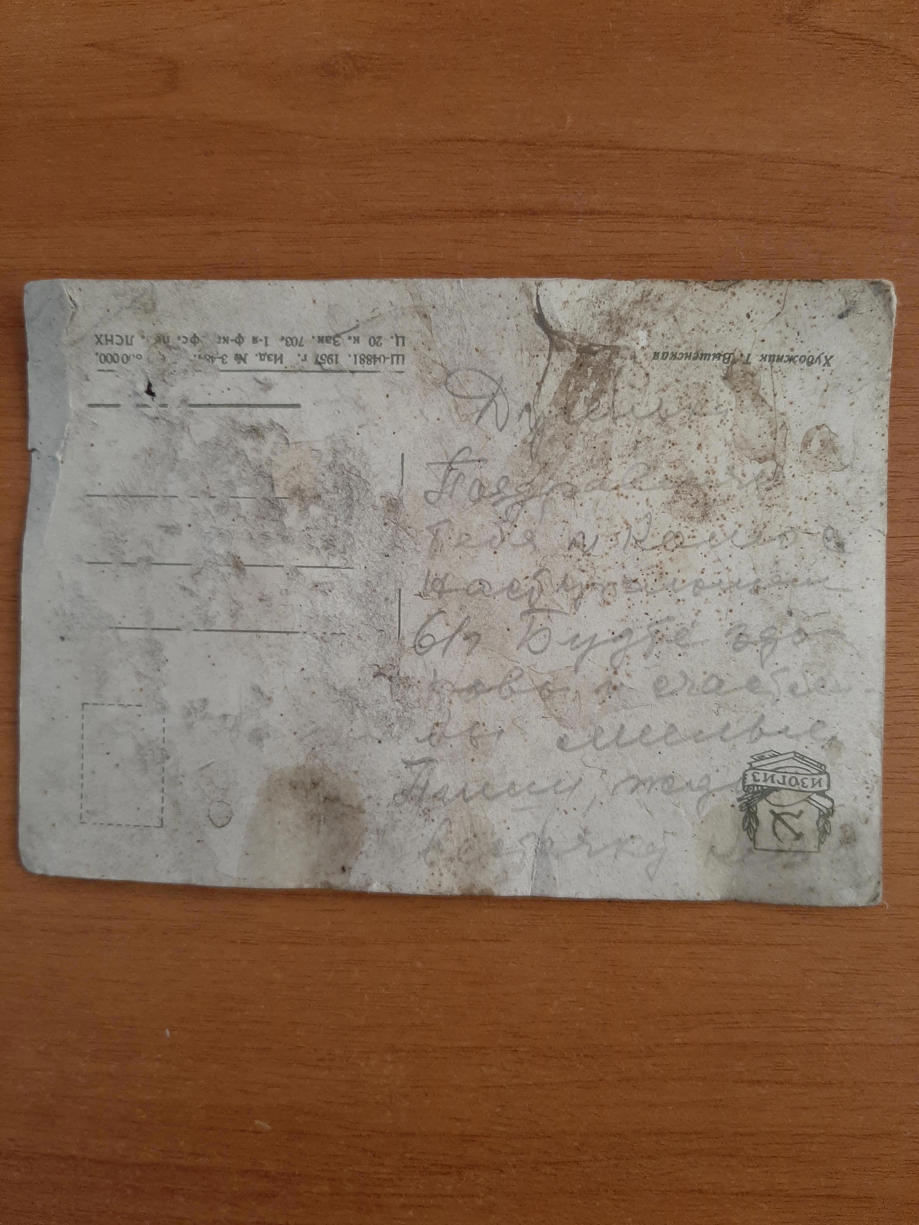 Не знаю, что стало с Ниной, Колей и доченькой-душенькой, но старая открытка никому из них уже не нужна. Совсем чуть-чуть не доехала до мусорки. Великий Рандом изменил ее судьбу и оставил на асфальте, у меня под ногами.
