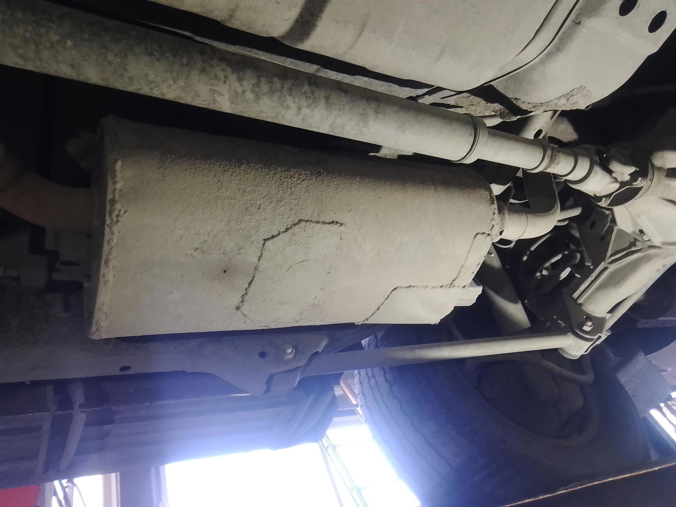 Потом позже заглянул владелец Нивы со штифтом от суппорта в руках, и говорит "а чего это у него посередине утолщение появилось?", на что я ему сказал, что это не посередине утолщение, а по краям он изношен очень сильно. Нивовод издал неопределенный звук, и сказав что надо купить новый, исчез в неизвестном направлении. А это выхлоп того Крузака с колодками.