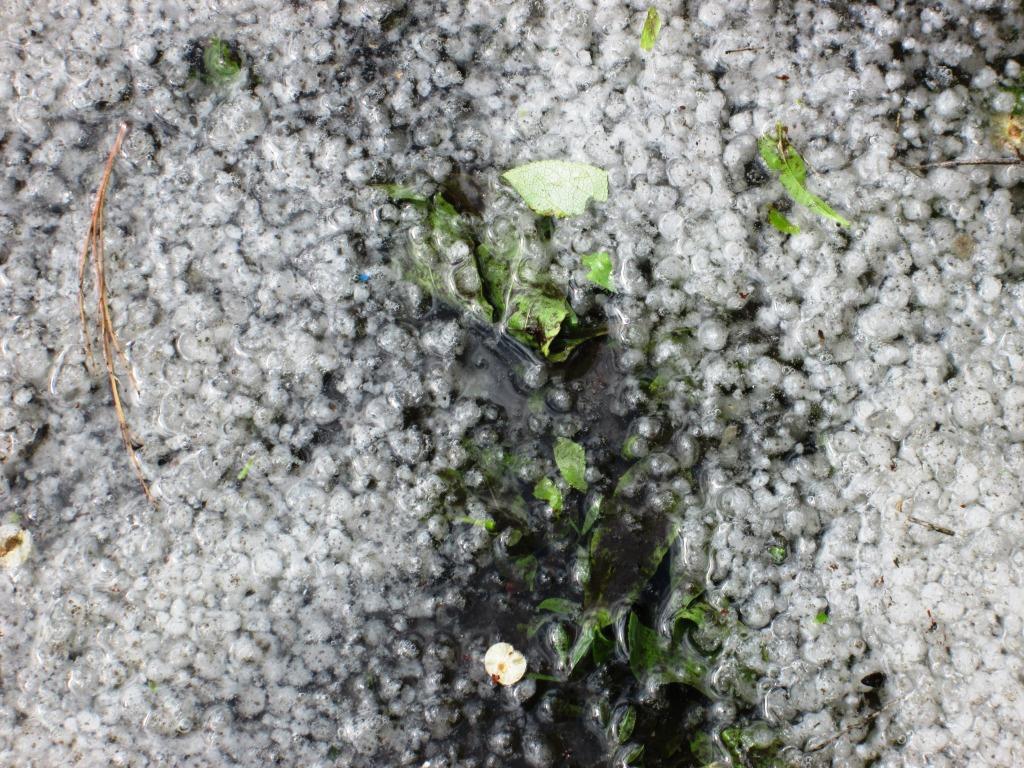 Как ни удивительно, несмотря на тёплый день и появившееся солнце, даже когда я шла на обед, местами ещё встречались островки града. Вот я его и сфотала. Видите, какой он крупный даже спустя 10 часов после того, как выпал?