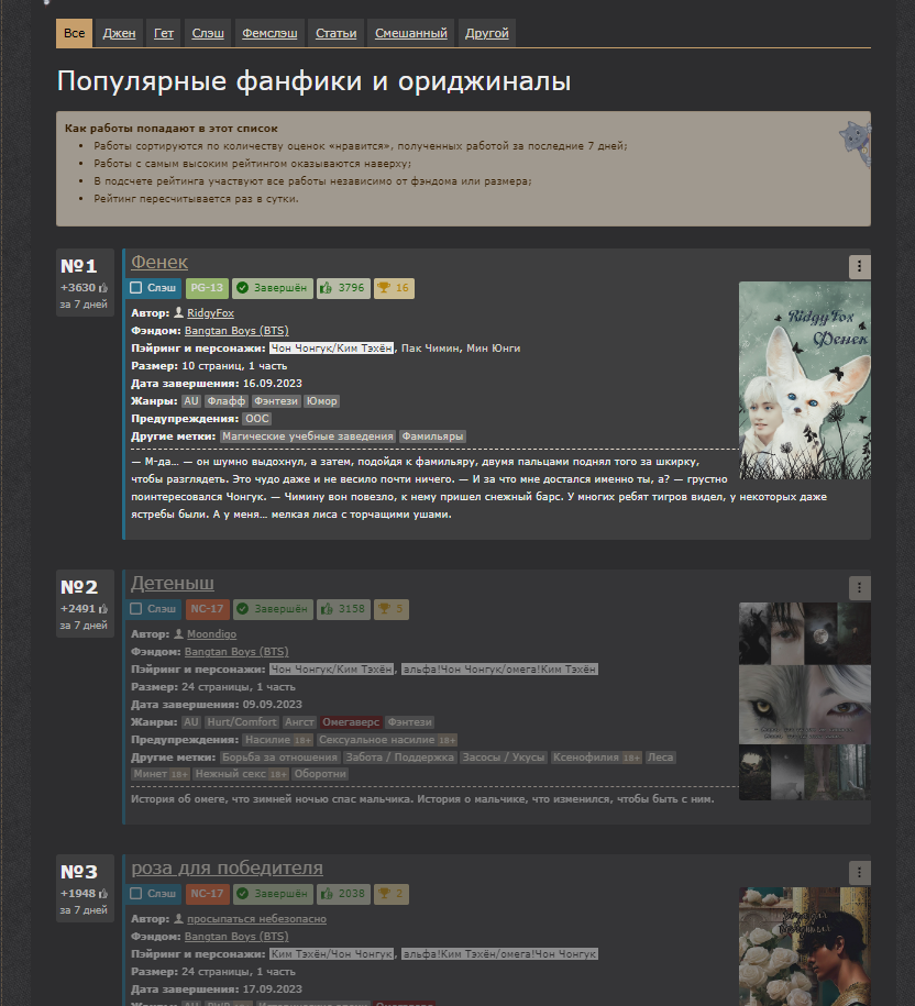 Но на сайте сложно было что-то отыскать, поэтому в 2012 я создал свой раздел на СамИздате для рекомендаций и каталогизации макси фанфиков. Шло время, список пополнялся, в комментариях велись жаркие баталии.