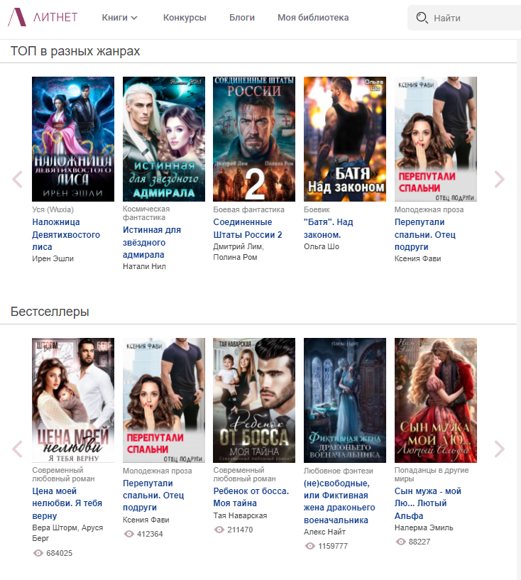 https://litnet.com/ru - для женщин (Женщины 58.72%, Мужчины 41.28%)