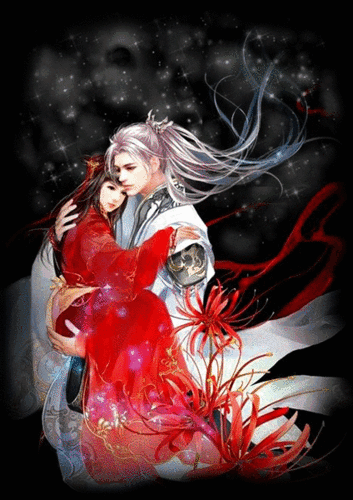 Как я уже говорила ранее, в Японии крайне редко изображали цветы Хиганбана. Но сейчас немало японских художников, пишущих в западной манере или в традиционной японской нихонга, создают изображения этого цветка. Но больше всего изображений Хиганбана в иллюстрациях. Часто подобные иллюстрации сопровождаются письменными пояснением «си о коисуру» т.е. «влюблен в смерть» . Но если в думаться и проанализировать все легенды о ликорисе, то смысл этого цветка вечная жизнь, постоянная череда перерождений.