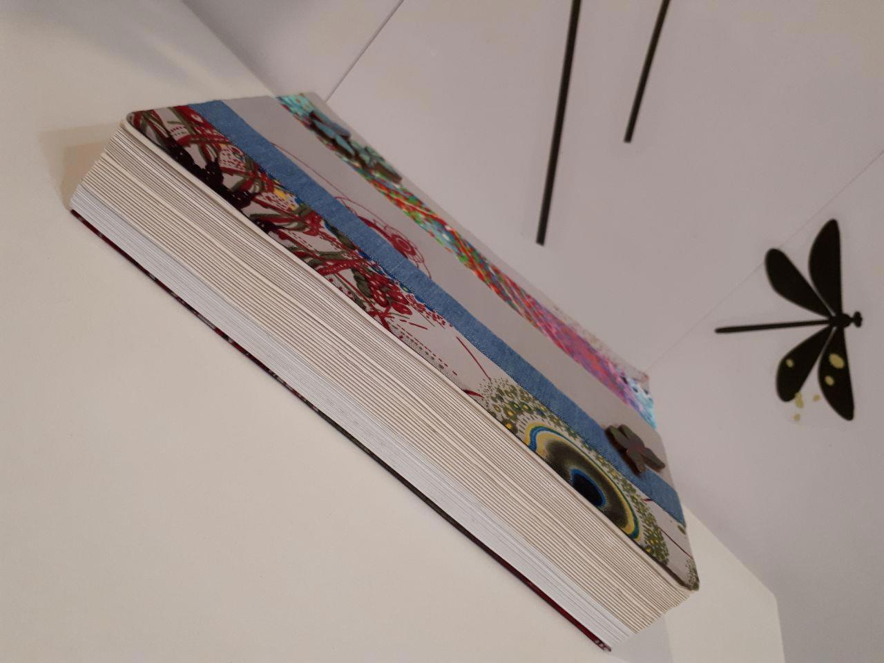 Книжка собрана из тетрадок, прошитых скрепками, так что раскрывается отлично и держится прочно.