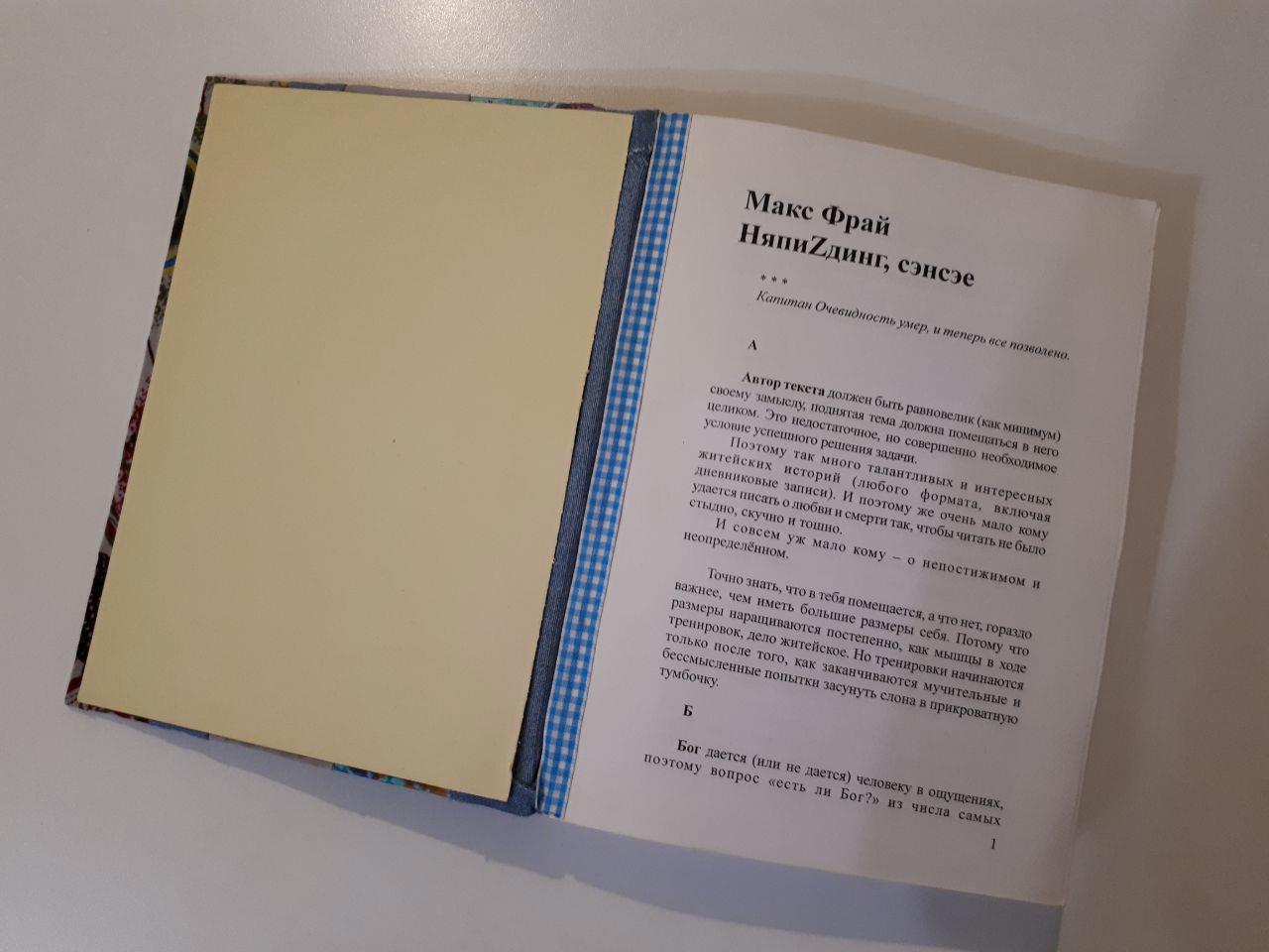 Автор: ВекшаДорогие сограждане по АТ, а вот не надо ли кому такую книжку? Макс Фрай, "Няпиздинг, сэнсэе", "Наперсники синея" и "Небесное, злодея" в одной самодельной книжке. Делалось для личного использования, но больше не понадобится. Могу отправить посылкой из Краснодара. Если никто не возьмёт, отнесу в буккроссинг.