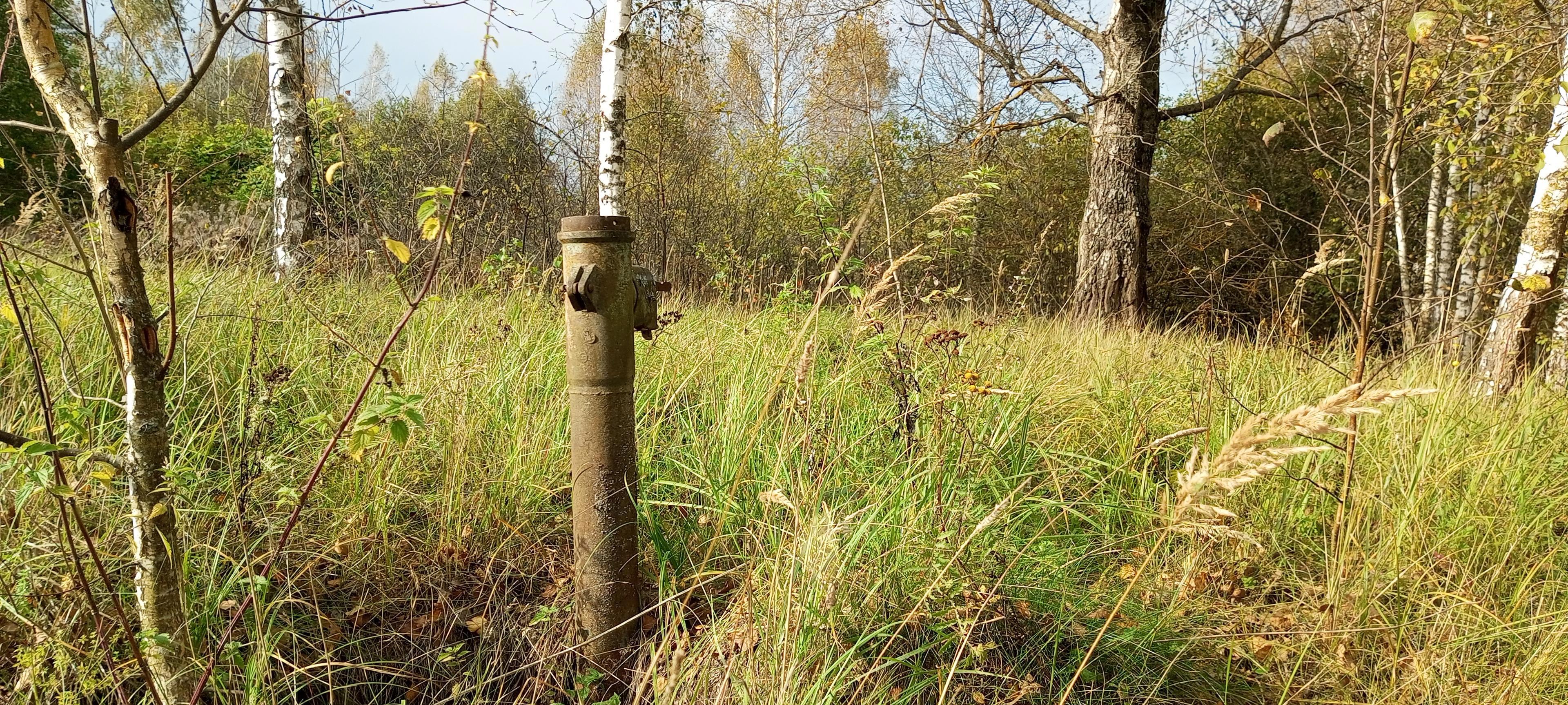 Справа вдоль дороги до сих пор видны колонки для воды, как последние знаки что рядом был некогда дом. Свидетельство Советской Эпохи, когда олонки ставили за счет колхоза, чтобы людям не нужно было ходить за водой на реку. Также свидетели той эпохи, столбы и провода электричества, которые уходили куда-то вдаль к крышам домов за деревьями.