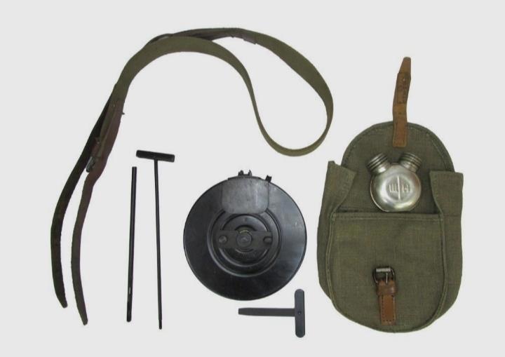 Автор: Андрей ОреховНамедни пополнил коллекцию - нашёл одним лотом "бубен" от ППШ, подсумок и ремень к нему же, плюс принадлежности (разборный шомпол, складная отвёртка, маслёнка).