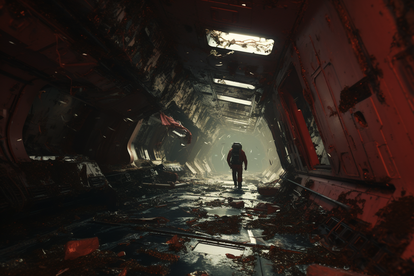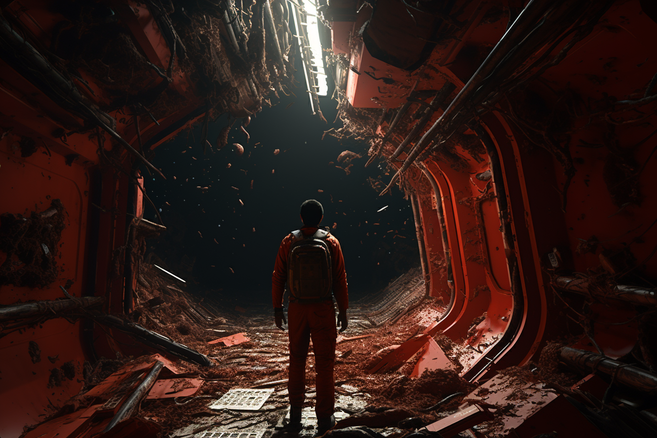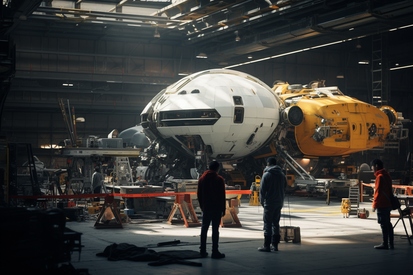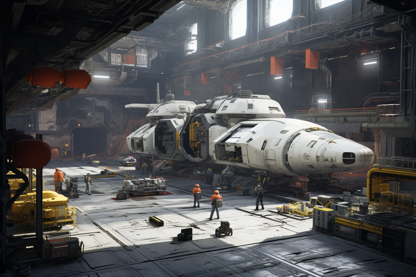 В доке мы заняли один из ремонтных боксов и весь ангар. Разбирали смешанные, а местами спрессованные детали, рисовали схемы их расположения, чтобы потом сравнить с исходным планом корабля. Раскладывали по полу ангара. Ву лепил на детали метки и заносил в базу, чтобы, при необходимости, можно было легко найти любую из них.