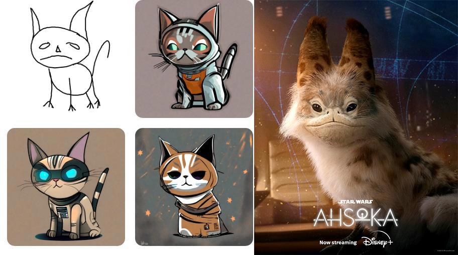 Есть проги где по вашему рисунку-каляки можно нагенерить что то путнее. И то не всегда. У меня Лот-кот из Асоки не вышел.)))