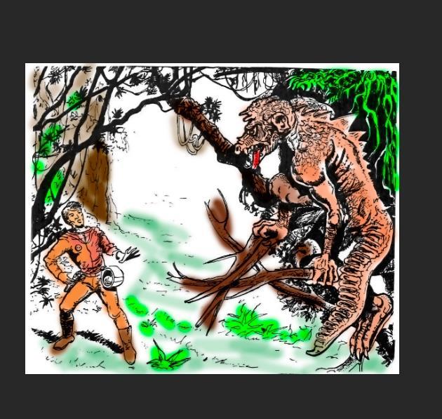 Но вернёмся к ч/б иллюстрации. Здесь два варианта. Первый, раскрасить вручную. Долго, нудно и не факт что получиться. Как у меня.)