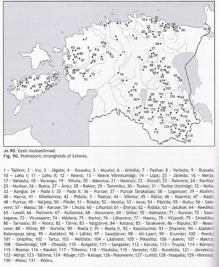 И очень удивляет остров Хийумаа, второй по величине остров Эстонии общей площадью 989 км², на котором почему-то нет ни одного городища. Можно порассуждать почему. Известно, что в 14-ом веке в северной части Хийумаа появилось шведское поселение, а в 1228 году в документе, которым епископство Сааре было передано в аренду епископу Готфриду, Хийумаа упоминается как часть этого феодального владения в качестве пустого острова: "некий необитаемый остров под названием Дагейда" (лат. Quadam insula Deserta, quae dicitur Dageida). Был ли этот остров всегда совсем уж необитаемым?