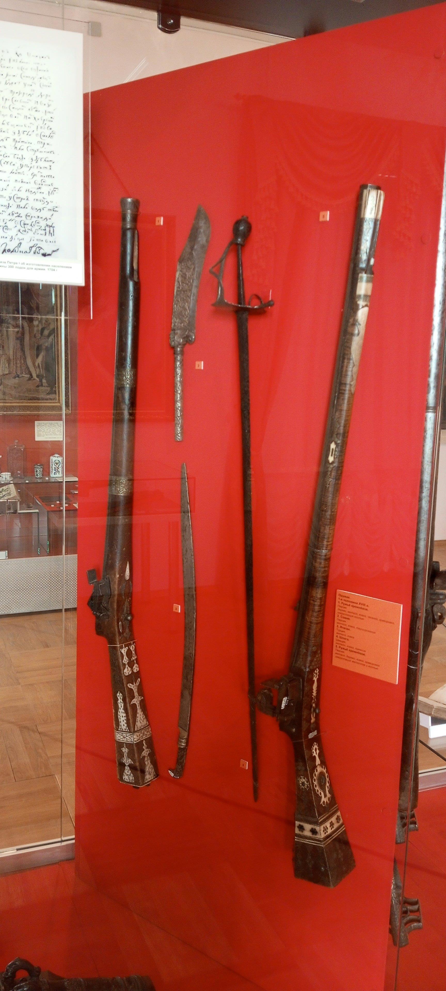 Ну, почти! Два реконструкторских рыцарских доспеха, каким-то образом, затесались зачем-то в экспозицию, (я их даже не стал фотографировать), а вот остальное импортное оружие, которая так или иначе попадало в смоленскую землю выставлено в избытке.