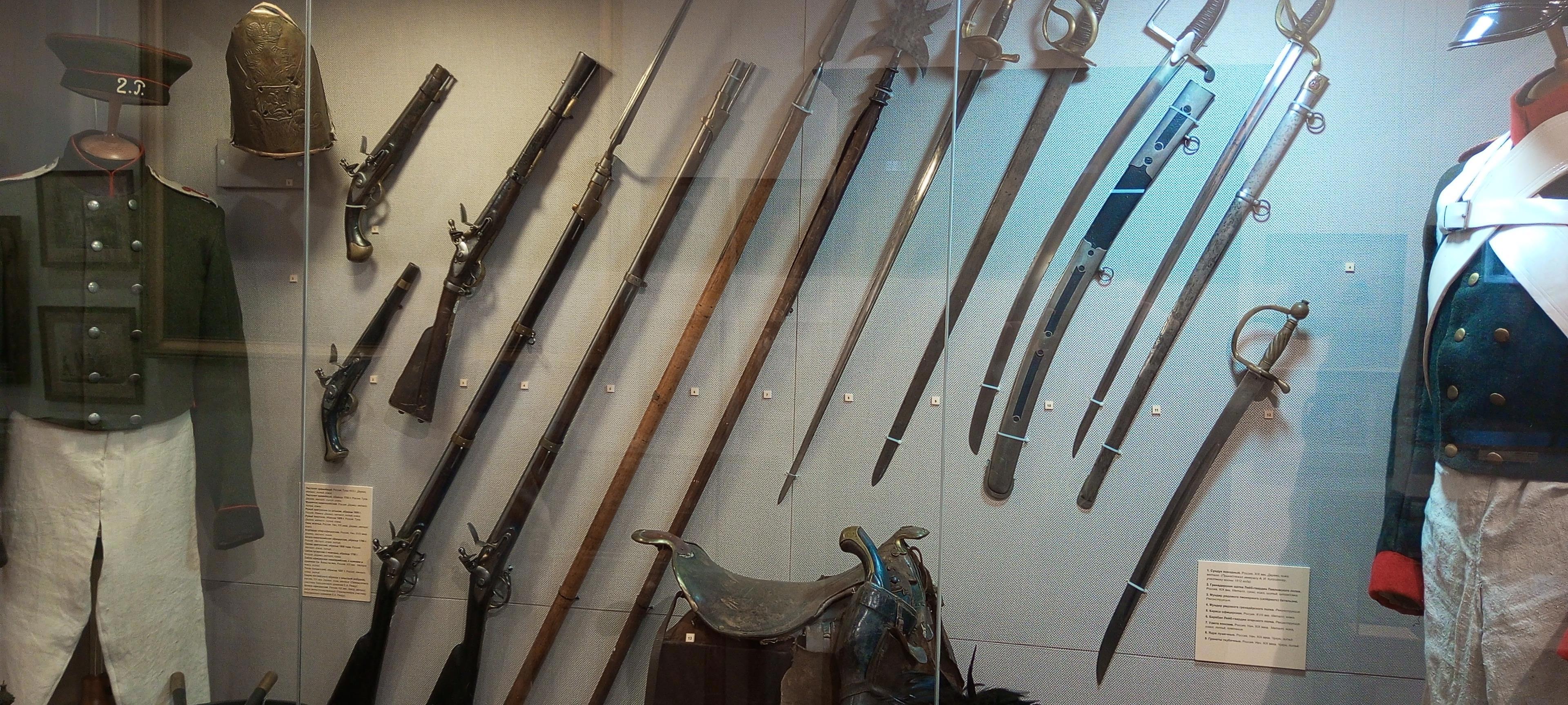 В этом музее не рассказывают о какие-то военных действиях, за исключением подавления мятежа белогвардейцев, после которого наступила собственно Советская Власть, читай пришли другие хозяева. Можно, сказать, что это скорее внутренний конфликт, а военная форма в выксунском музее вообще имеет отношение к сватовству гусара. Вот буквально: герой войны 1812 года сватался к дочери местного магната и чудил в городе, устраивая концерты и джигитовки. Женился, потом честно управлял имуществом жены.