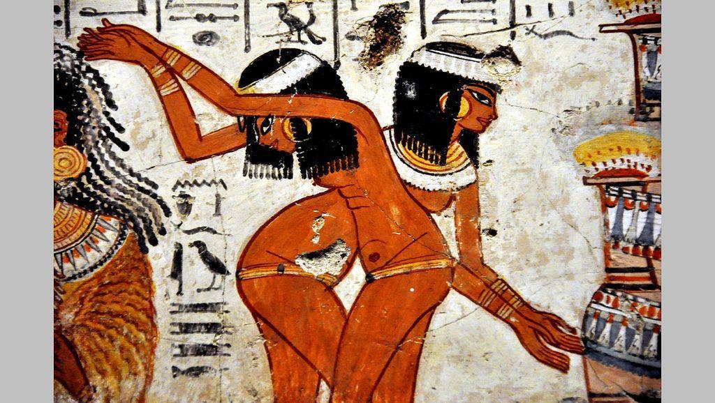 Танцовщицы. Часть росписи из гробницы вельможи Небамун времен правления царя Небмаатра. Британский музей. Лондон.