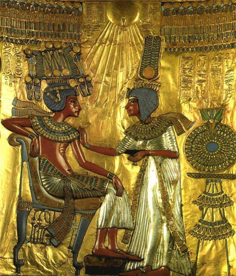 Спинка трона царя Тутанхамона с изображением царя и Супруги царской Анхесенамон.