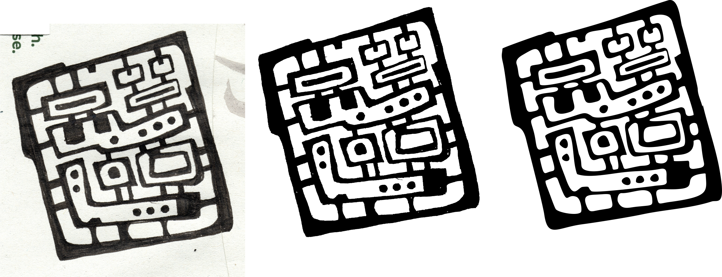 Конечно, сначала стараемся без нахальства, и добиваемся более менее подходящей формы, в меру сил, способностей и времени (а сканы рисунков рукой, лучше сначала подготовить и сделать как-нибудь уже гладко в фотошопе, рисовалке (и им подобных программах) недавно опять рассказывал немного на эту тему, как в предыдущем посте выбрав объект, разгладив линию выбора - залить на новом слое. А потом уже в автоматическую векторизацию. Тогда вышеописанный метод будет не нужно использовать чрезмерно много, искажение будет меньше, но эта операция придаст рисунку очаровательную законченность)