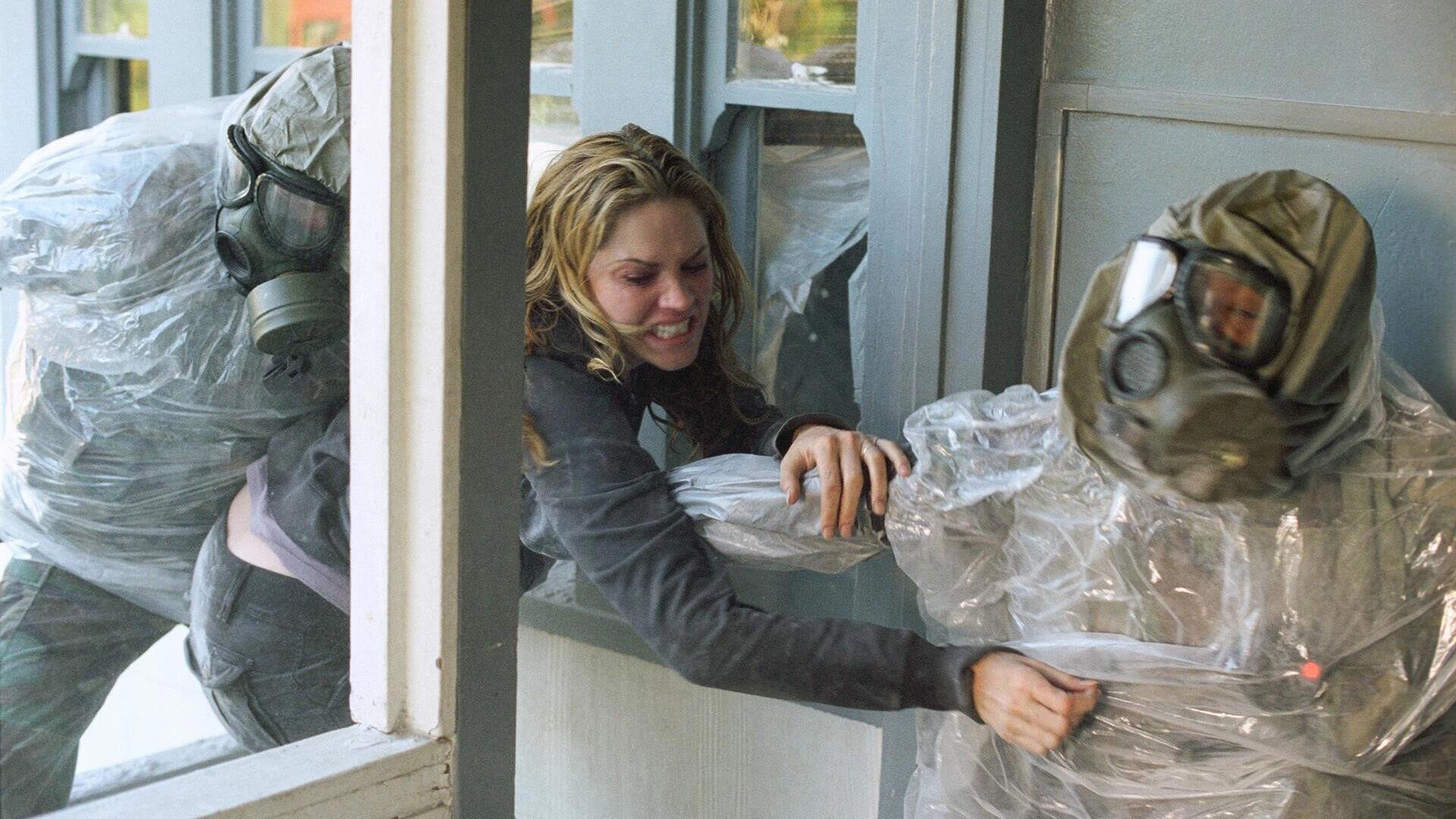 Бред слушая новости сначала носится с ошалелыми глазами по дому, выбегает, пытается вызвонить Лекси, а так конечно не отвечает, поскольку связь парализована. Вся надежда Бреда только на жену, за которой как за каменной стеной. Но пока Лекси нет, приходится принимать меры. Вот тут поклонники секты антимасочников отдохнут полной душой! Вообще как антиваксеры пропустили сей фильм, я даже не представляю! Слушая инструкции из телевизора, Бред полностью изолирует дом, заклеивает все окна, двери и вентиляцию. Что с дорогой Лекси он понятия не имеет, она где-то там в центре, ему сейчас важно спасти хотя бы свою жизнь, а на счет Лекси остается только причитать и хвататься за голову (я полагаю, что Лекси в аналогичной ситуации полетела бы в центр бить морды копам и искать своего супруга).