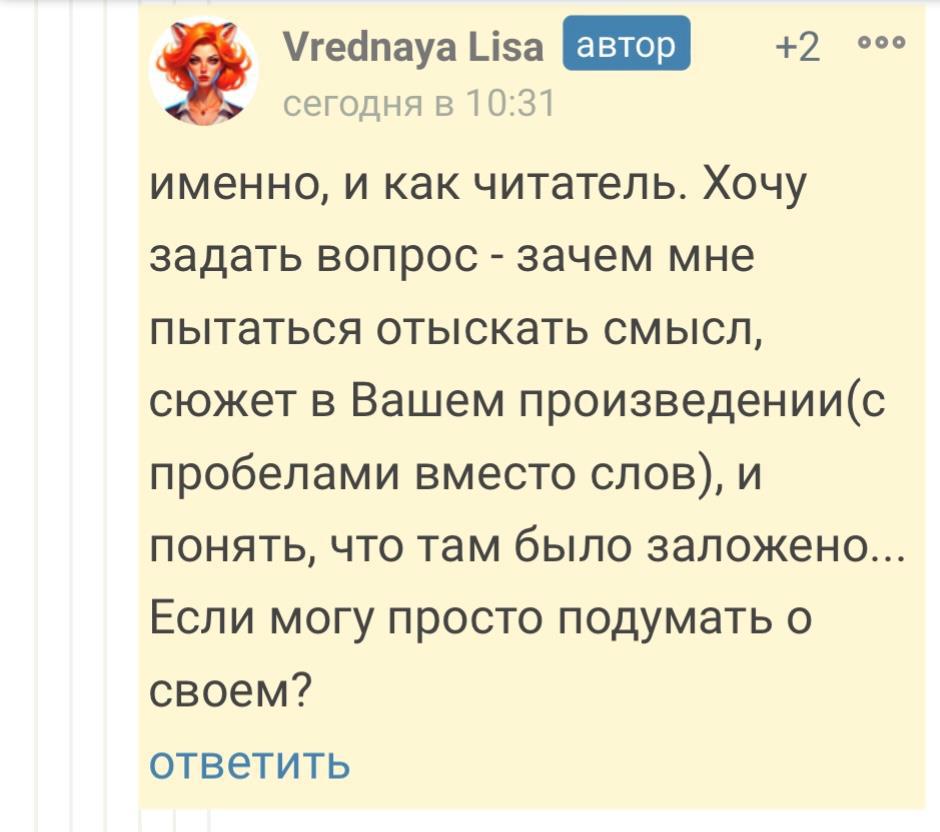 И вспомните, пожалуйста, прежде, чем наброситься на меня с критикой, что "Черный квадрат" Малевича стоит двадцать миллионов долларов.