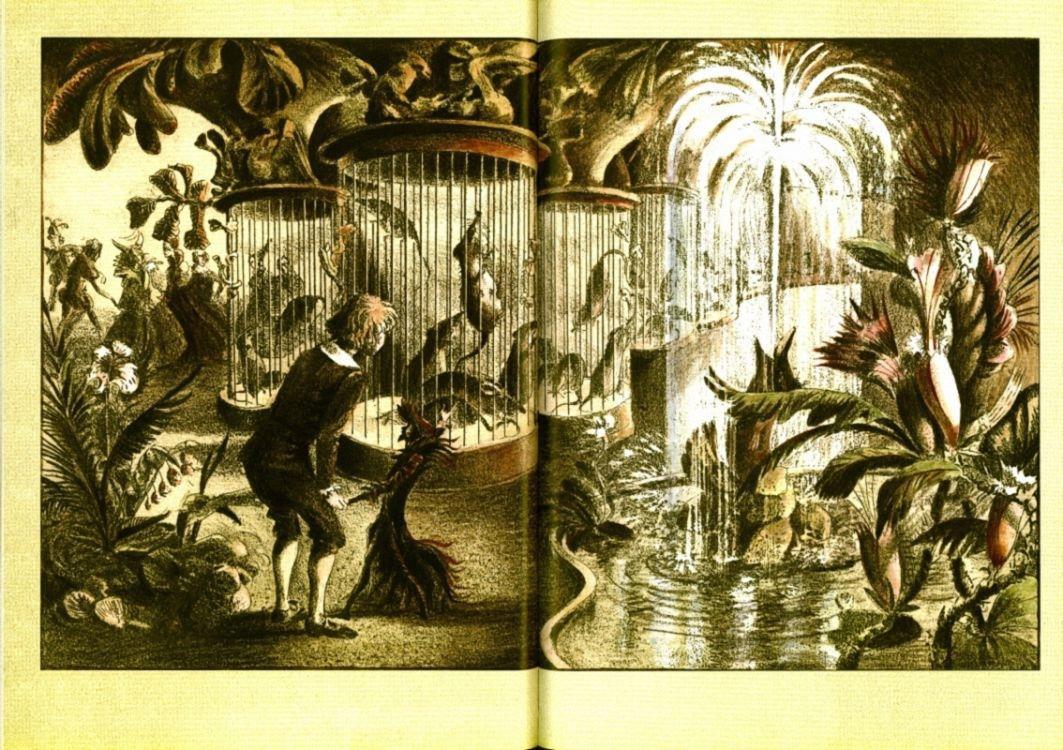 Это детское впечатление помогло мне впоследствии, когда я задумывал и долго работал над литографиями к своей любимой книге «Чёрная курица» Погорельского. Ведь и Алёша — герой этой книги, оставленный родителями в чужом, враждебном ему пансионе, чувствовал себя лишённым любви и заботы маленьким одиноким существом. Вот тогда-то и появилась в его жизни таинственная подземная страна, населённая удивительным, благородным, великодушным народом.