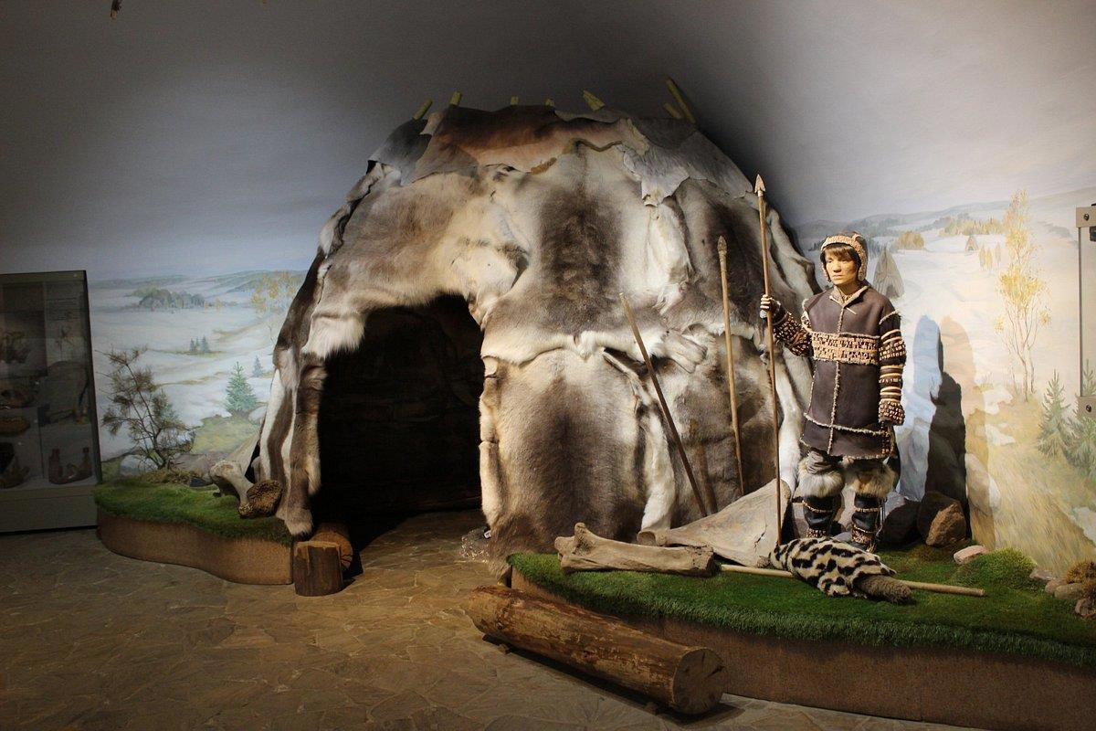 В следующем зале — «Путешествие в каменный век» — можно разу перенестись на 25 тысяч лет назад и познакомится с археологическими находками из самой северной палеолитической стоянки Европы, попробовать добыть огонь, изготовить каменное орудие и подготовиться к охоте.