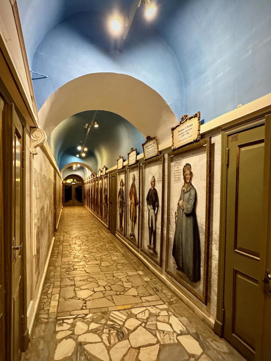 Здесь же представлены картины, гравюры, рисунки, барельефы и альбомы. Из портретов выделяются: Евдокии Лопухиной, царевича Алексея, Екатерины II (гобелен) и Н. Зубова.