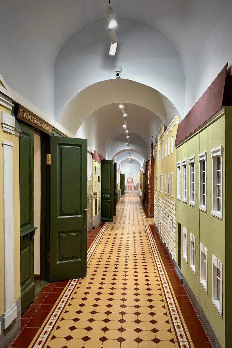 Очутиться в старорусской школе поможет тематический зал. Помещение обставлено длинными широкими лавками, шкафами со старинными книгами. Атмосферу поддерживают маленькие слюдяные окна и сводчатые потолки. Для школьников проводятся уроки письма, счёта, вводное занятие «Как учились в старину». Во время таких «мастер-классов» можно опробовать «писало» и даже постоять на горохе в углу.