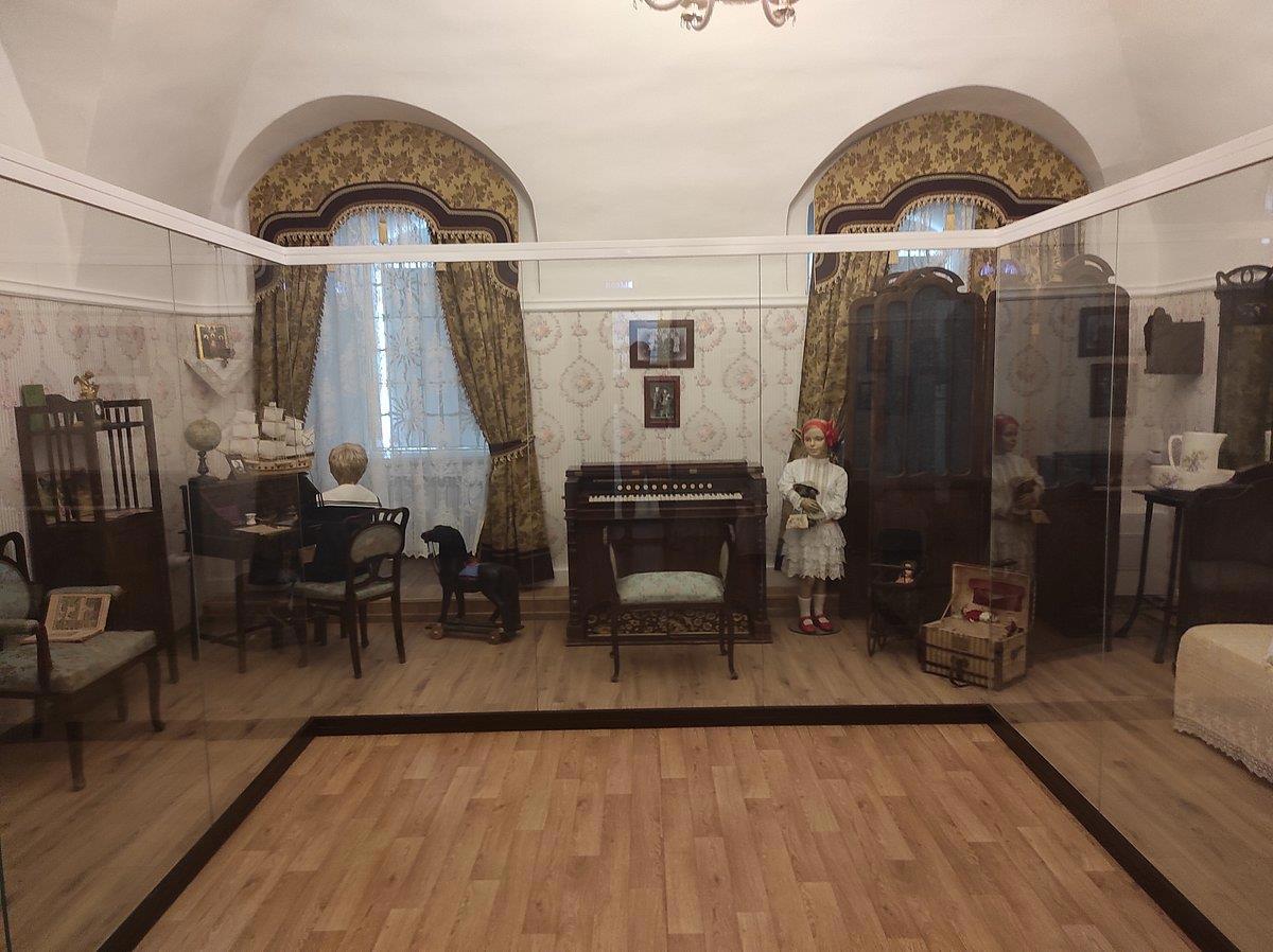Выставочный зал «В гостях у прабабушки» хранит подлинные вещи XIX–XX веков. Среди артефактов — мебель, музыкальный инструмент и, конечно же, игрушки.