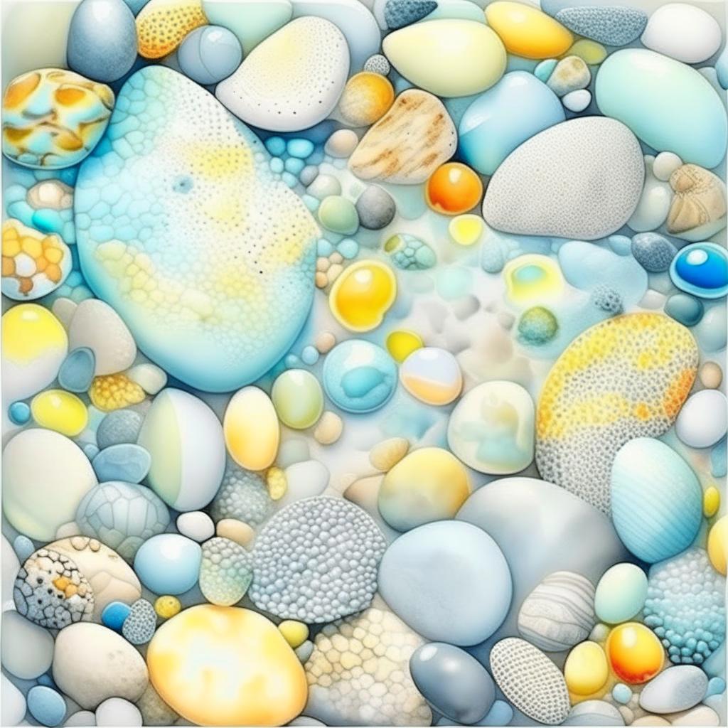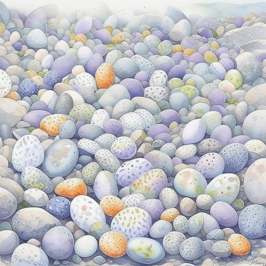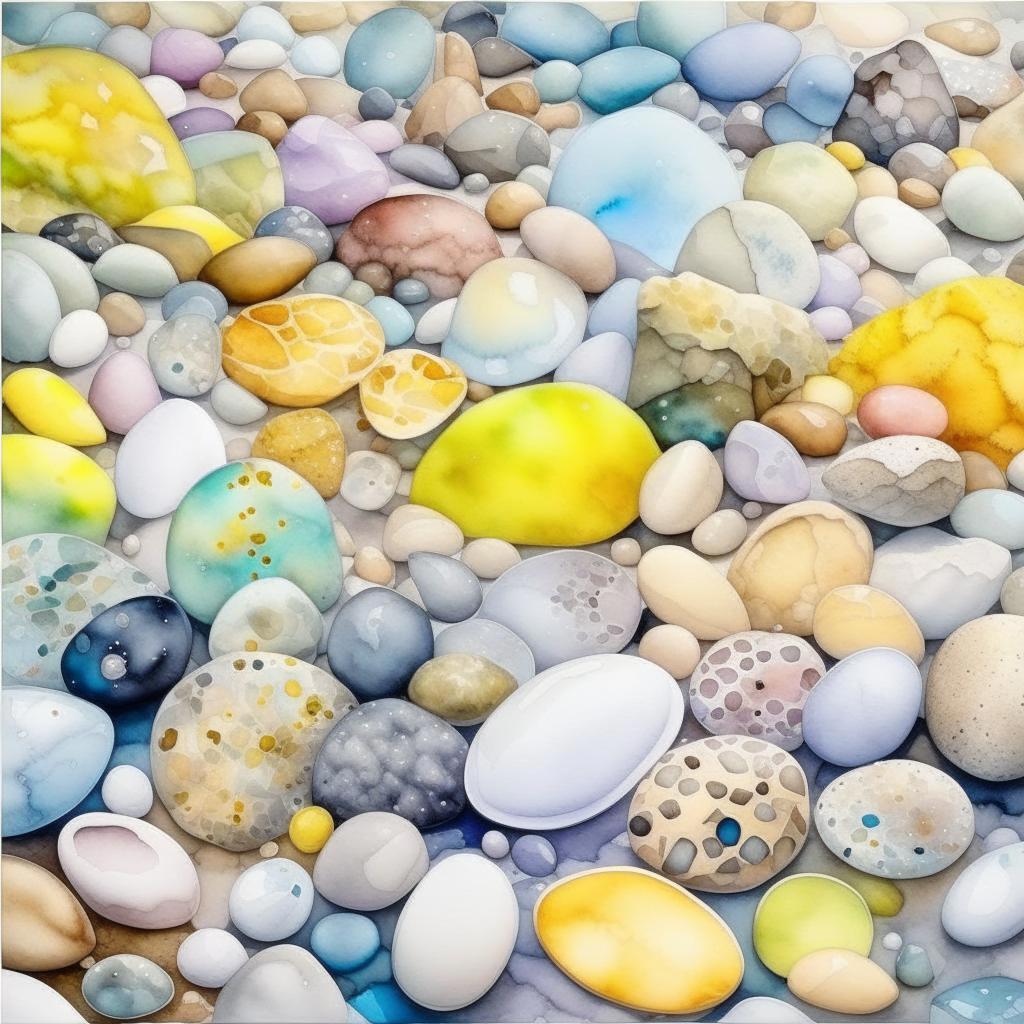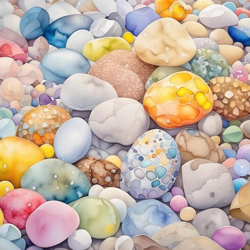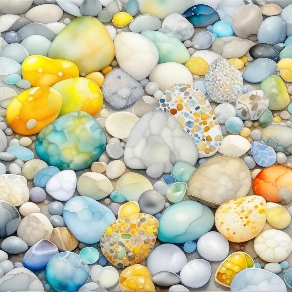 | А.10 | ![]() | Безделушки и безделицы, яркие камешки сплошным слоем, цветная прозрачная галька россыпью, мелкая и крупная, россыпь, неровности, природный камень, агат, нефрит, яшма, хрусталь, акварель, вода, ветер, золотистый, серый, бежевый, акварель, пастельные тона | без стиля |