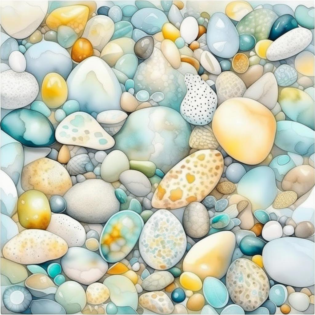 | А.6 | ![]() | Безделушки и безделицы, яркие камешки сплошным слоем, цветная прозрачная галька россыпью, мелкая и крупная, россыпь, неровности, природный камень, агат, нефрит, яшма, хрусталь, акварель, вода, ветер, золотистый, серый, бежевый, пастельные тона | без стиля | |||