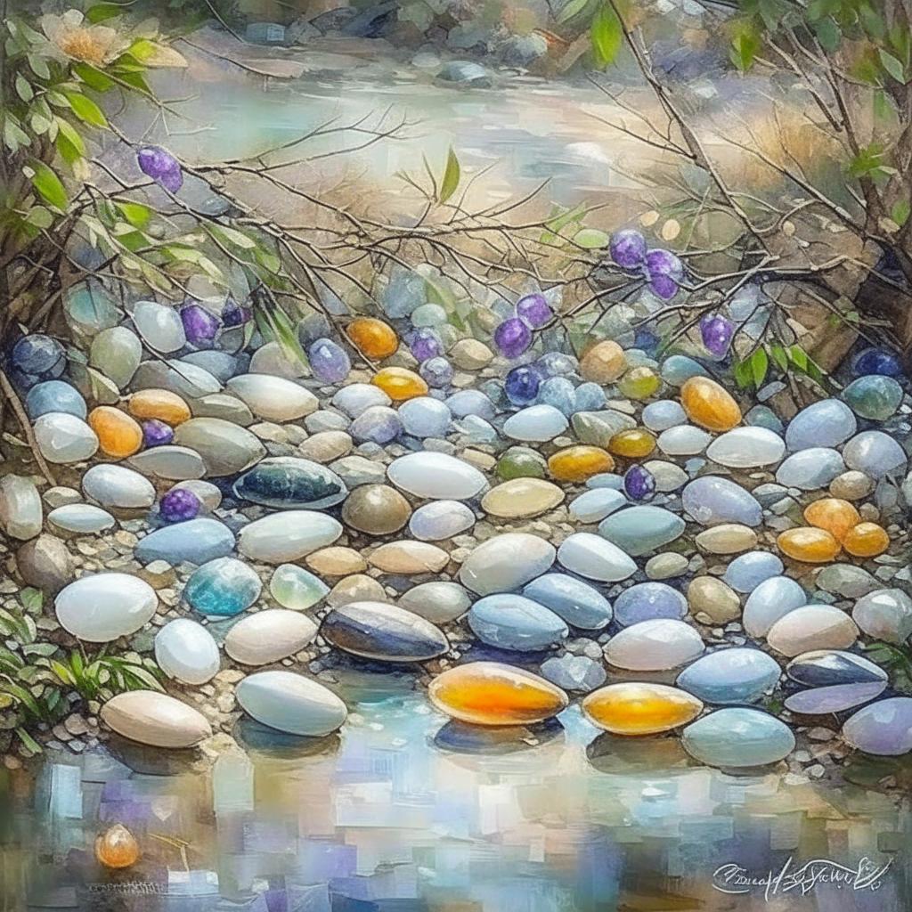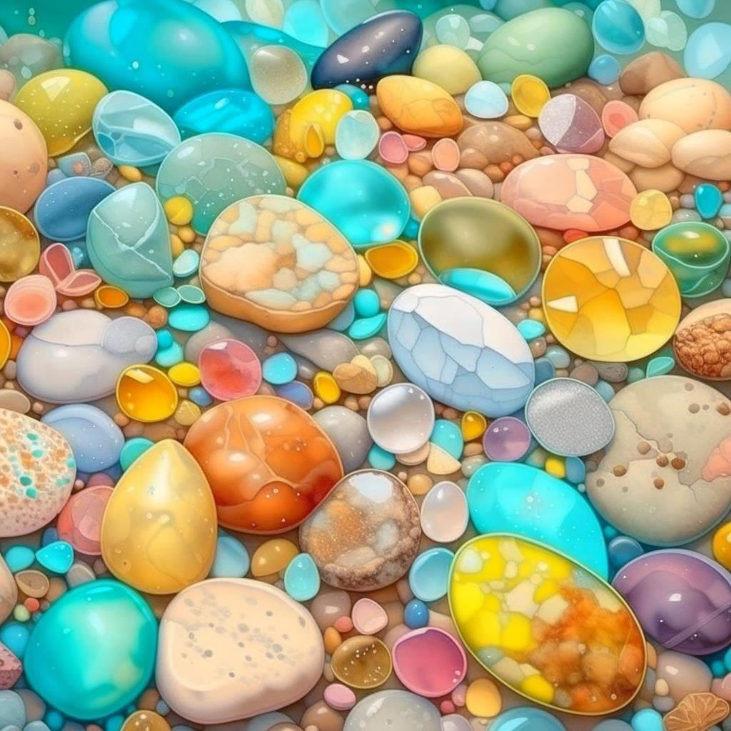 | А.5 | ![]() | Безделушки и безделицы, яркие камешки сплошным слоем, цветная прозрачная галька россыпью, мелкая и крупная, россыпь, неровности, природный камень, агат, нефрит, яшма, хрусталь, акварель, вода, ветер | без стиля | |||