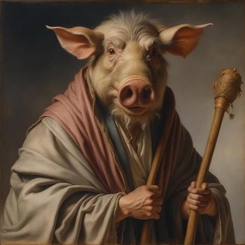 Это я попытался сгенерировать Жира из великолепной серии книг Вадима Нестерова "Куда идём мы...". Если не считать некоторых деталей, Пятачок получился, по-моему, очень впечатляющий. Правда, тут он уже остепенившийся по сравнению со своим книжным аналогом.