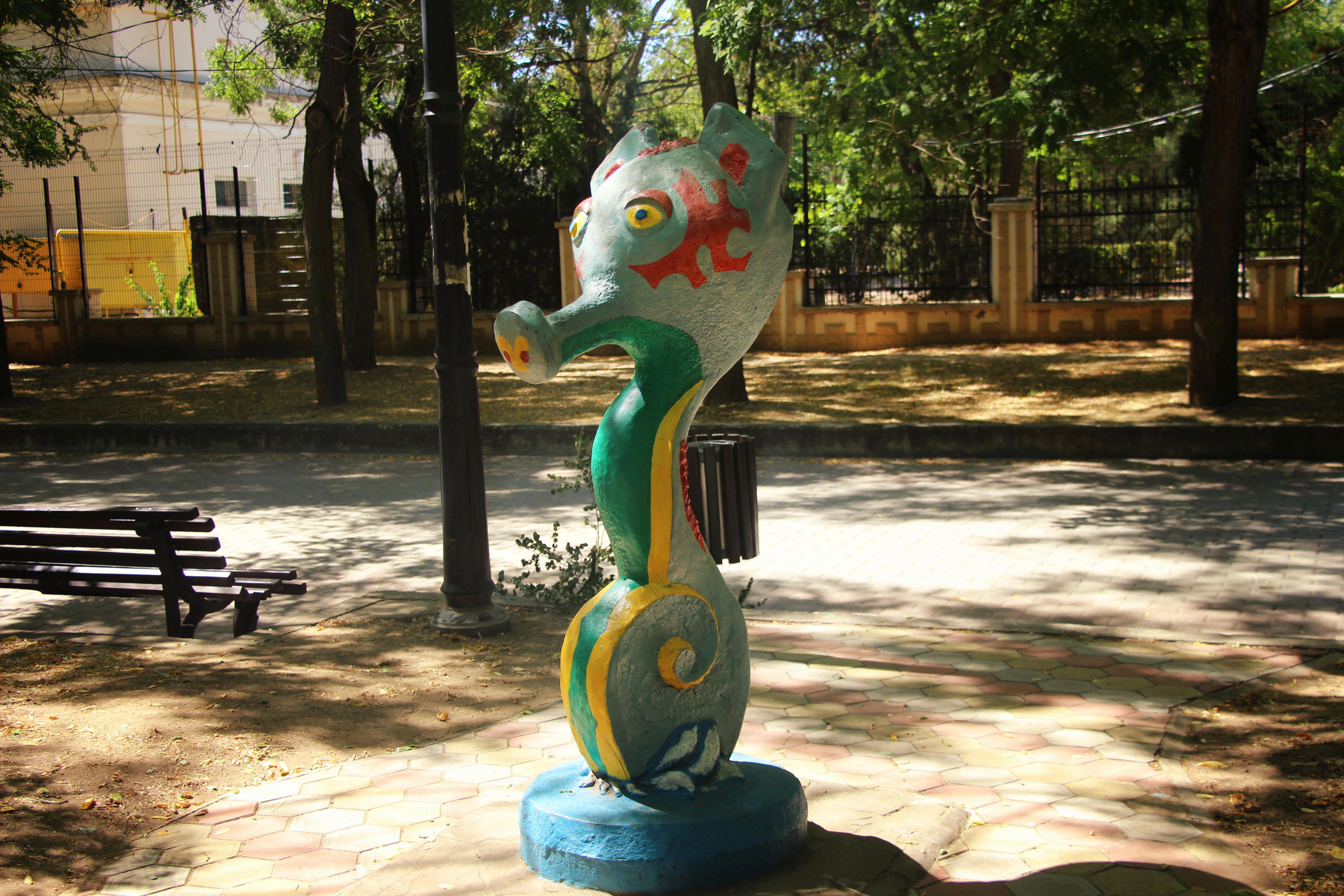Этот сквер меня поразил своей детской непосредственностью и оригинальностью. Жаль, но имя скульптора я найти не смогла! Хотя он и делал эти работы по рисункам детей, но воплотил-то он их сам! Как же тебя зовут загадочный скульптор?