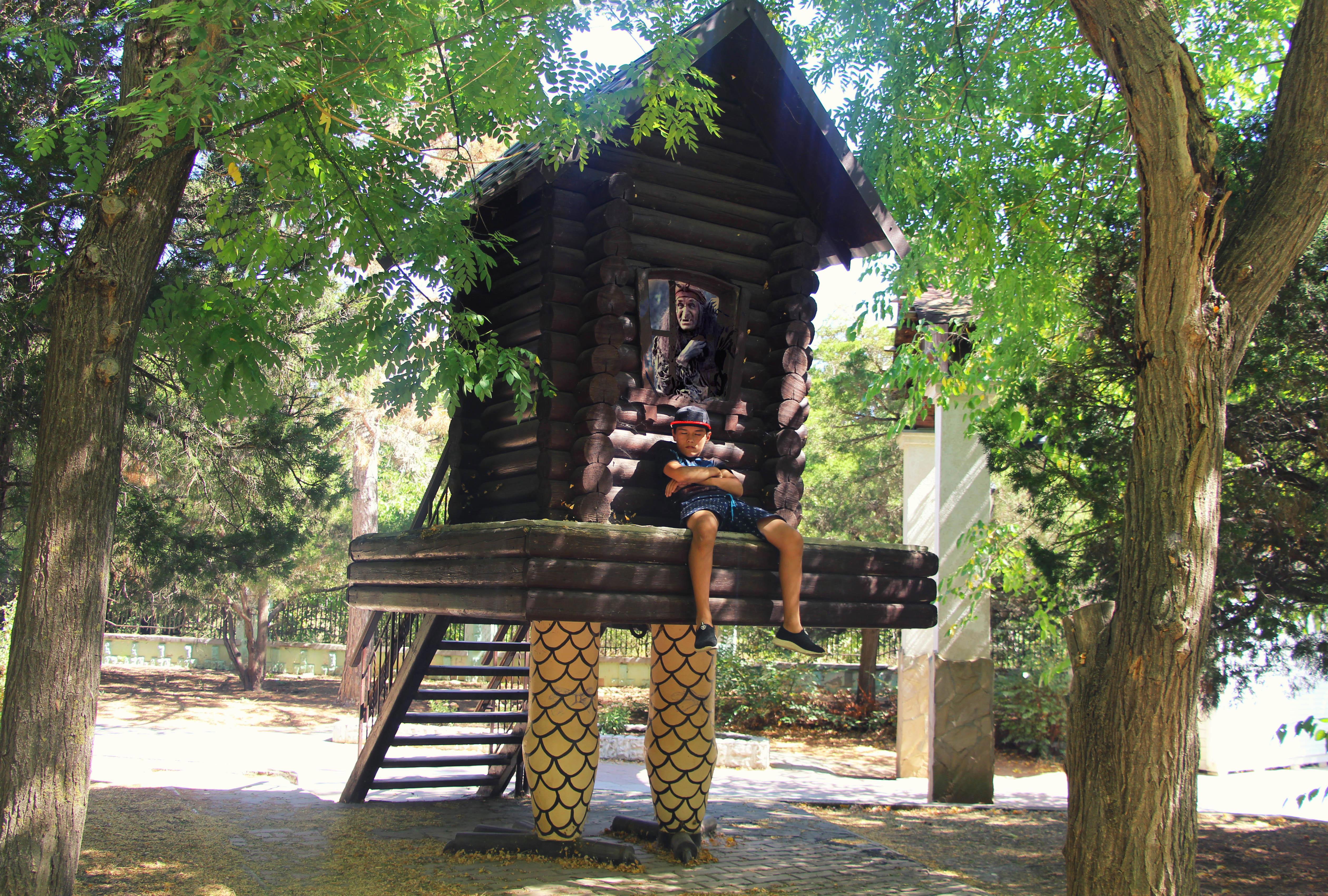 Справа - избушка на курьих ножках. А кто живет в ней? Конечно, всем знакомая Баба-Яга. К сожалению, домик был пуст, Поэтому я не удержалась и подрисовала в окне всеми любимую красавицу!