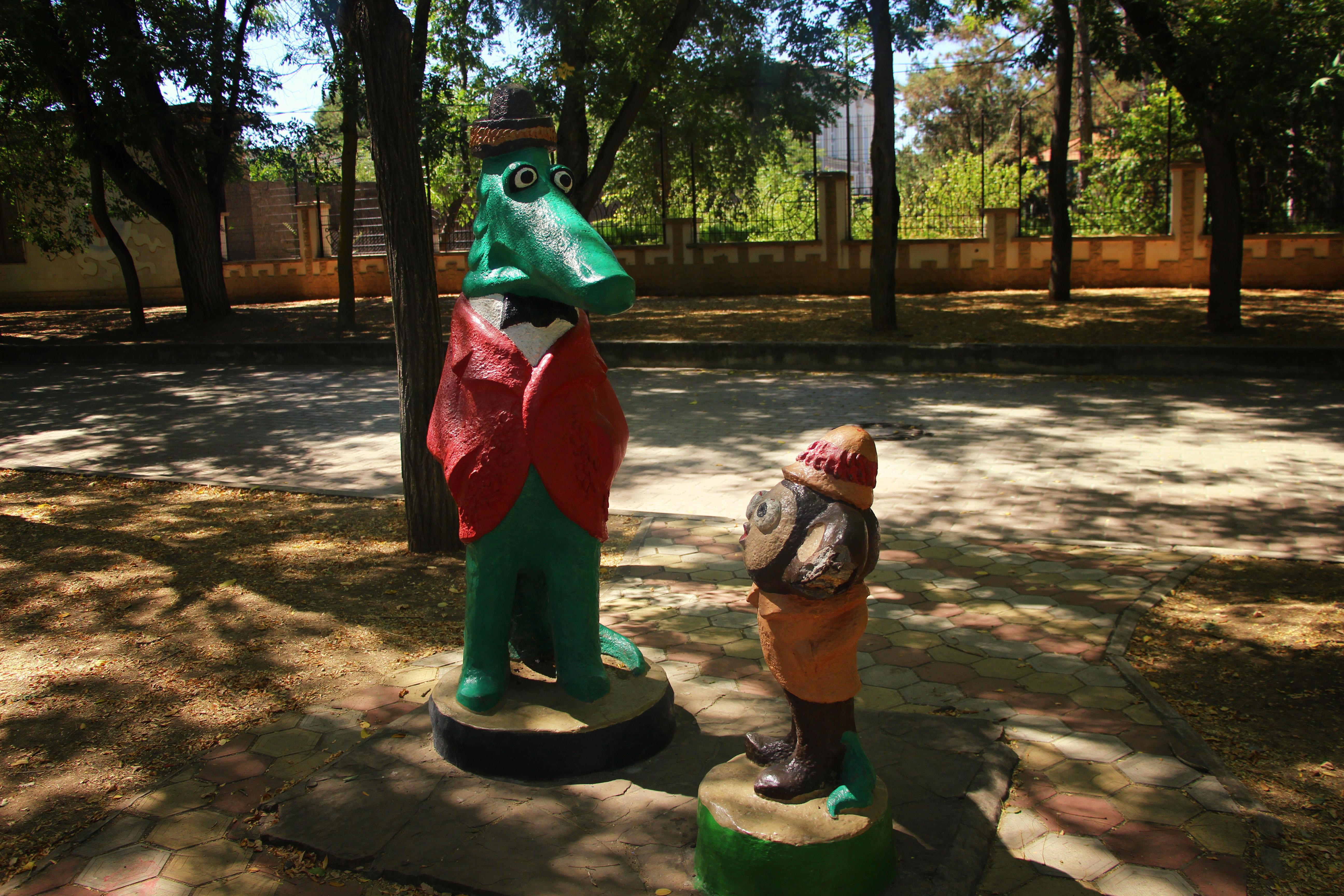 Не обошлось и без Крокодила Гены с Чебурашкой, Именно они, кстати, а точнее их необычный вид, меня побудили узнать об этих скульптурах побольше.