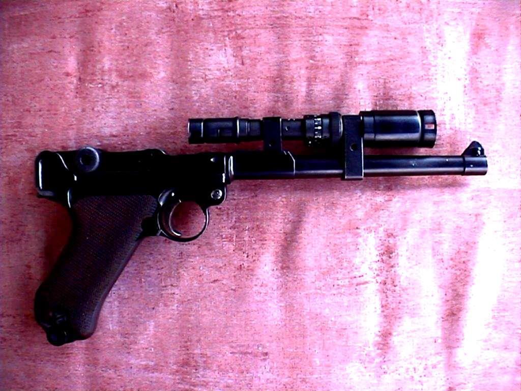Дескать, ну фантазируйте, да хоть меру знайте! Откуда оптика на P08 'Parabellum' Borchardt-Luger? Пушка, конечно, знатная, но это же всё-таки пистолет!