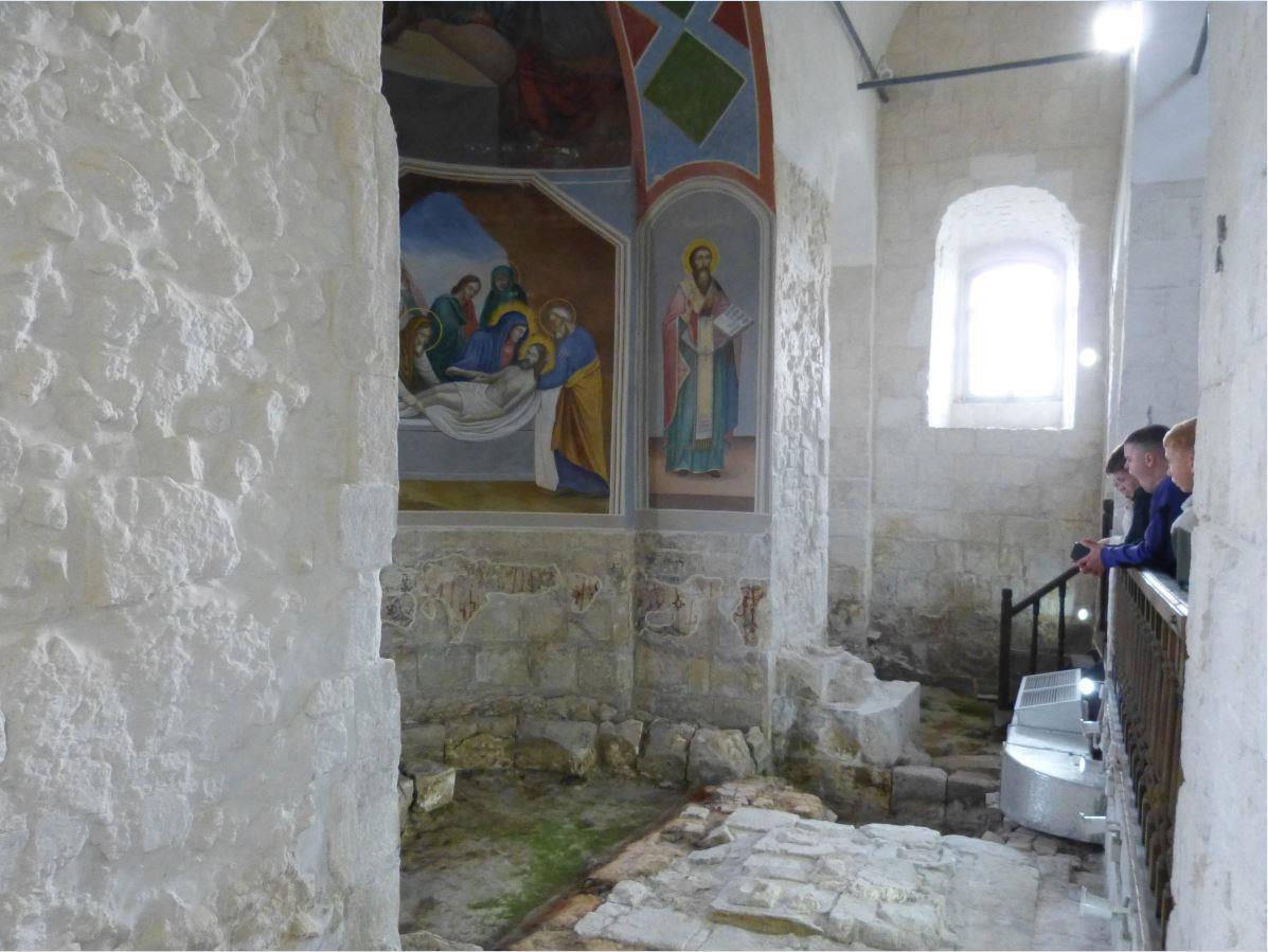 Перед этой фреской находилась могила князя Бориса Юрьевича.