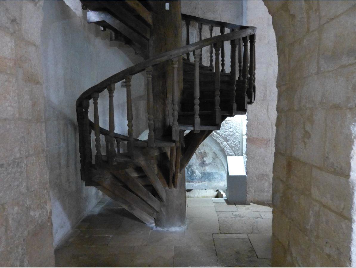 Имеется деревянная винтовая лестница, чтобы поняться на хор церкви, но туда проход запрещён.