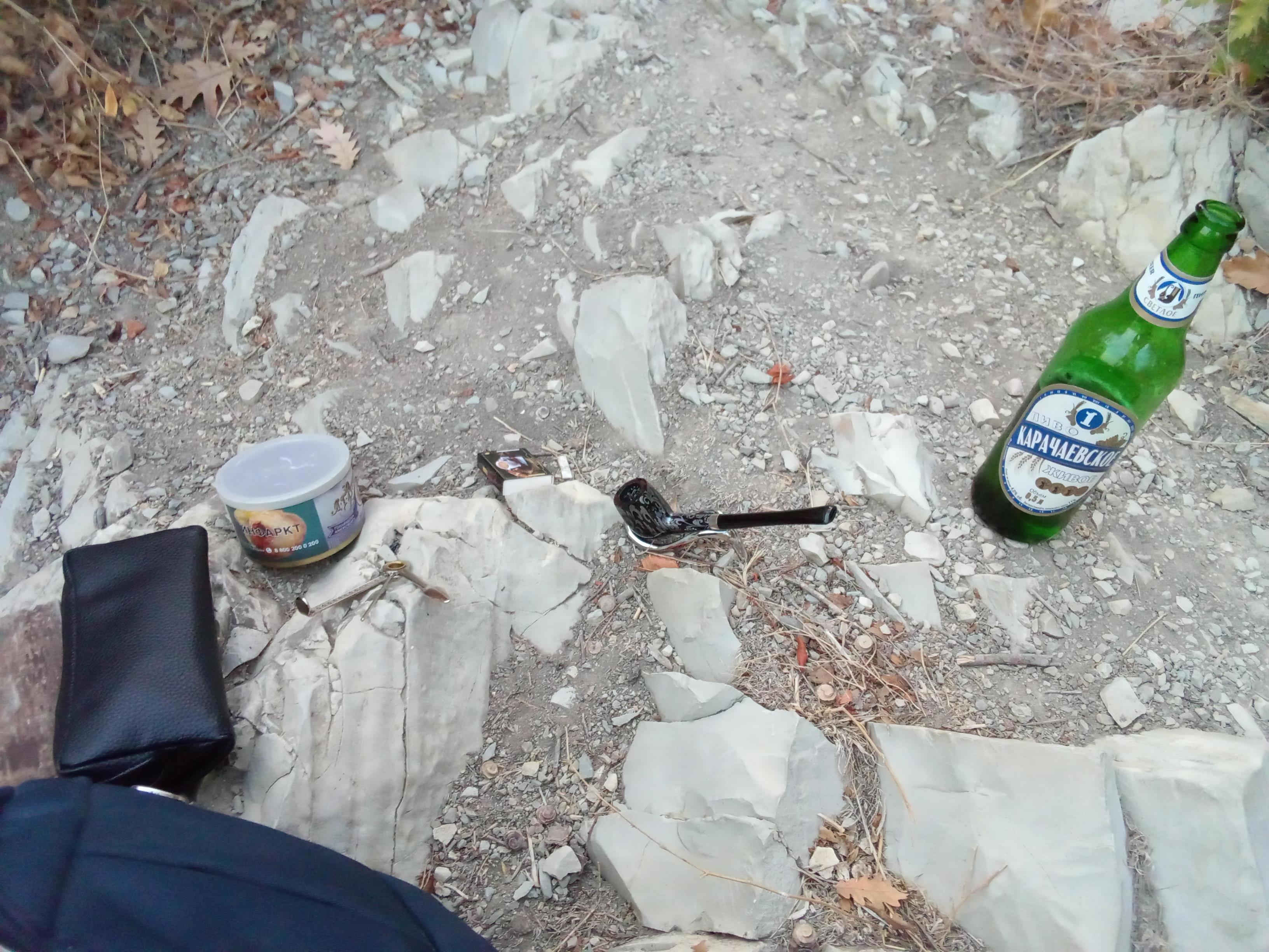 Неподалёку я приметил неплохое место: породы камня почти как лестница. Если приглядеться, можно увидеть там оставленную кем-то доску, на которой я и расположился, дабы любоваться видом под пиво и трубку.