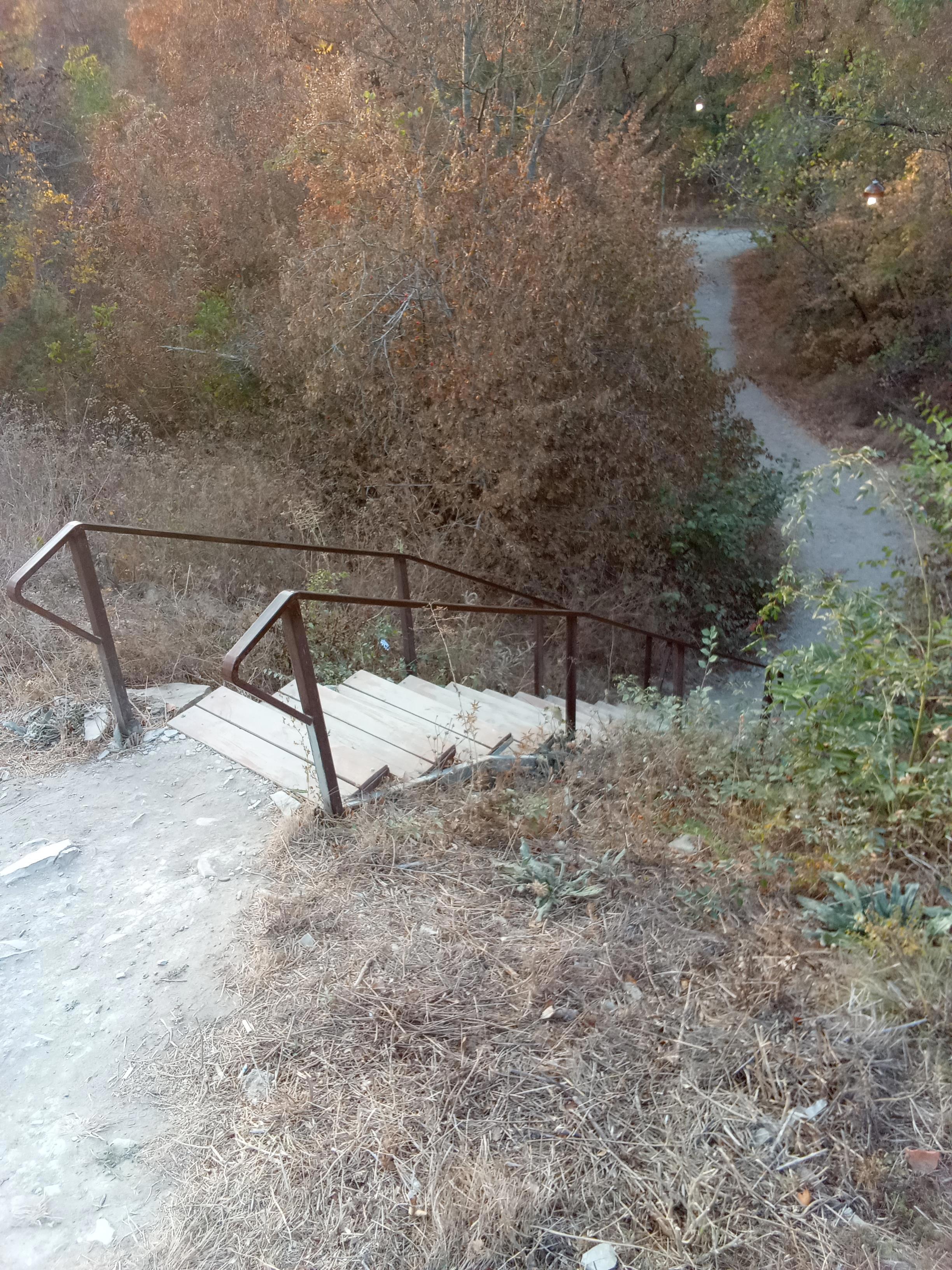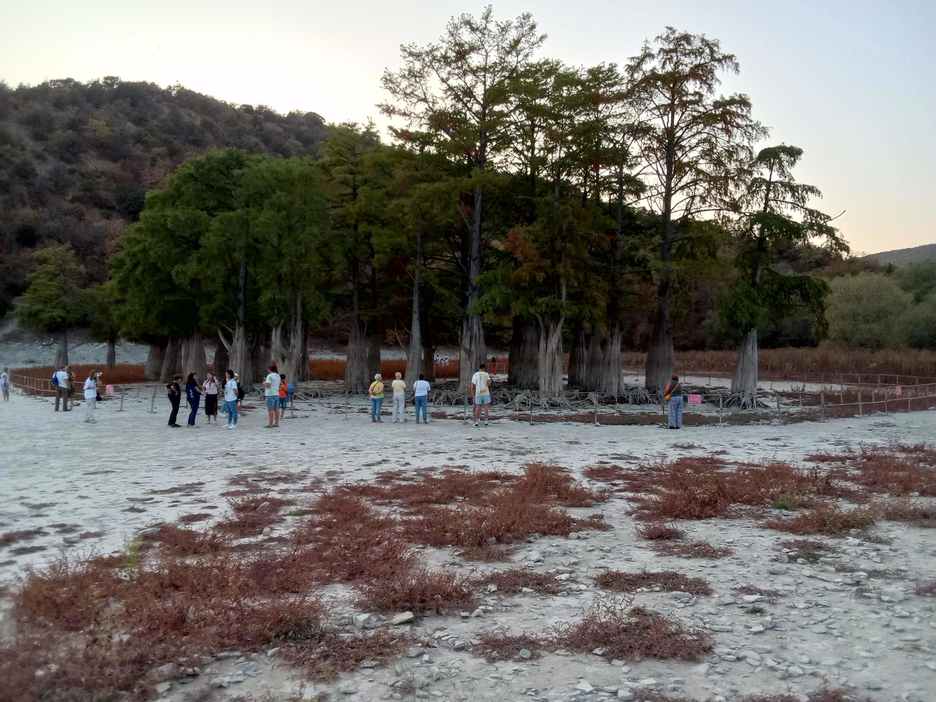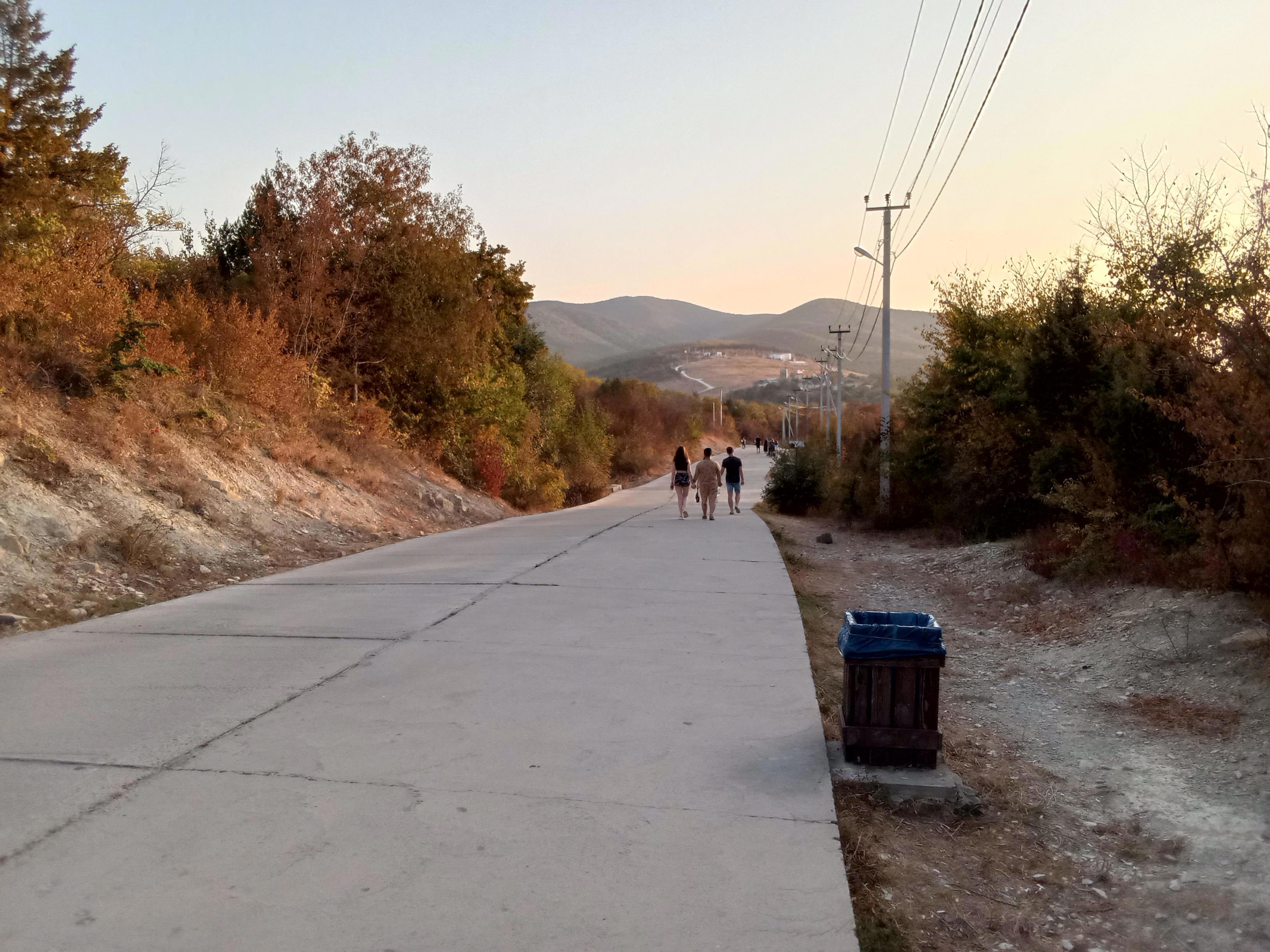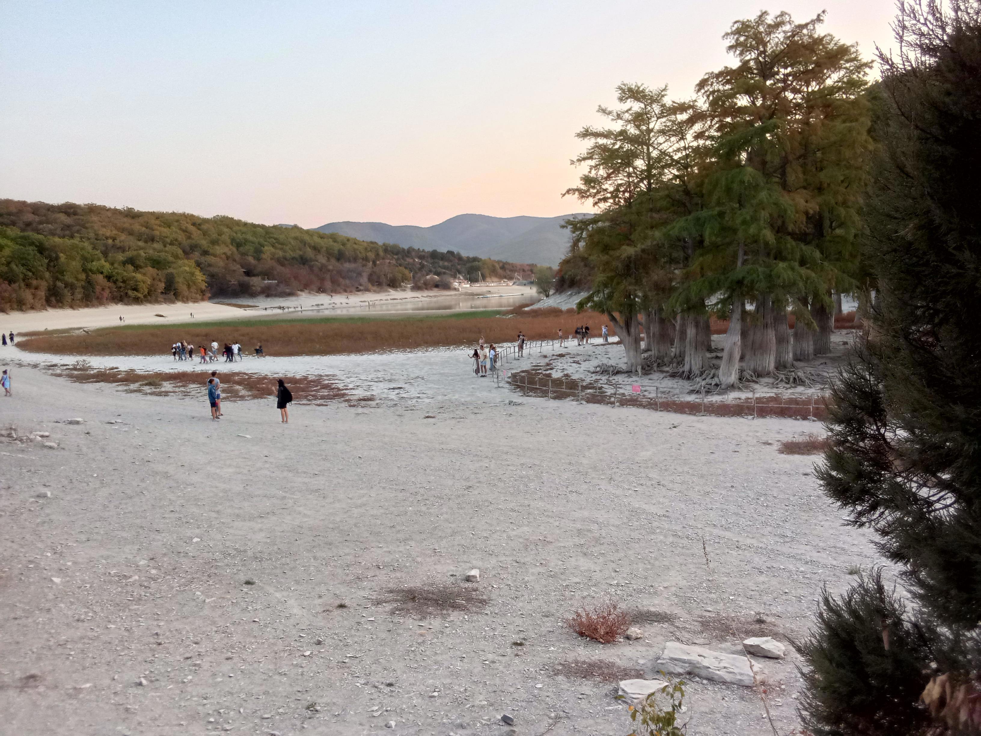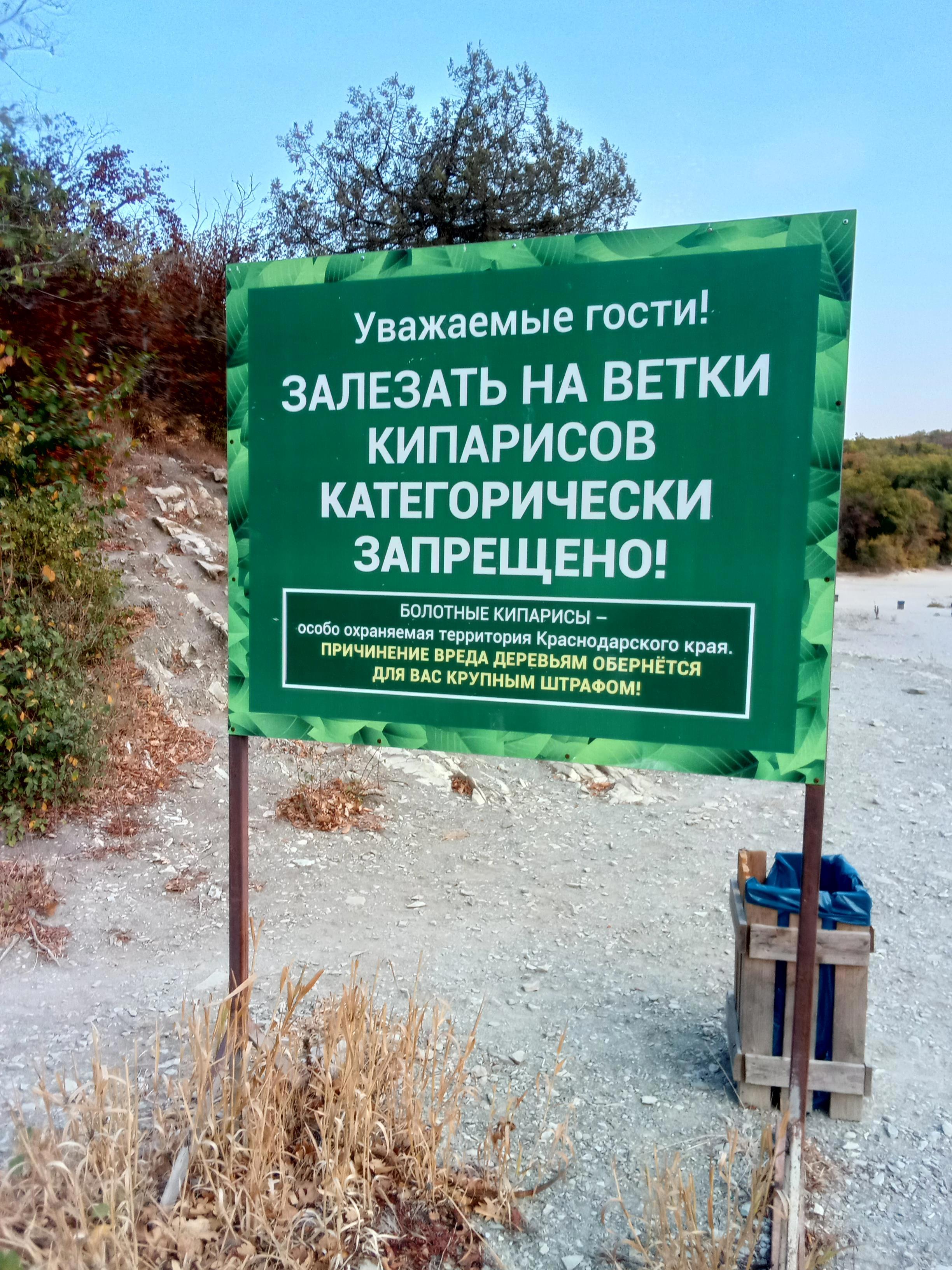 Каждые пять минут по мегафону раздаётся сообщение о том, что запрещено залезать на кипарисы, что это карается такой-то статьёй и вы заплатите штраф. И правильно. Они и так без воды стоят, еле-еле живут, а ещё если и люди начнут лезть, то ветки им поломают, что может привести к гибели и без того ослабленных деревьев. К слову, у нас уже три месяца нет дождей.