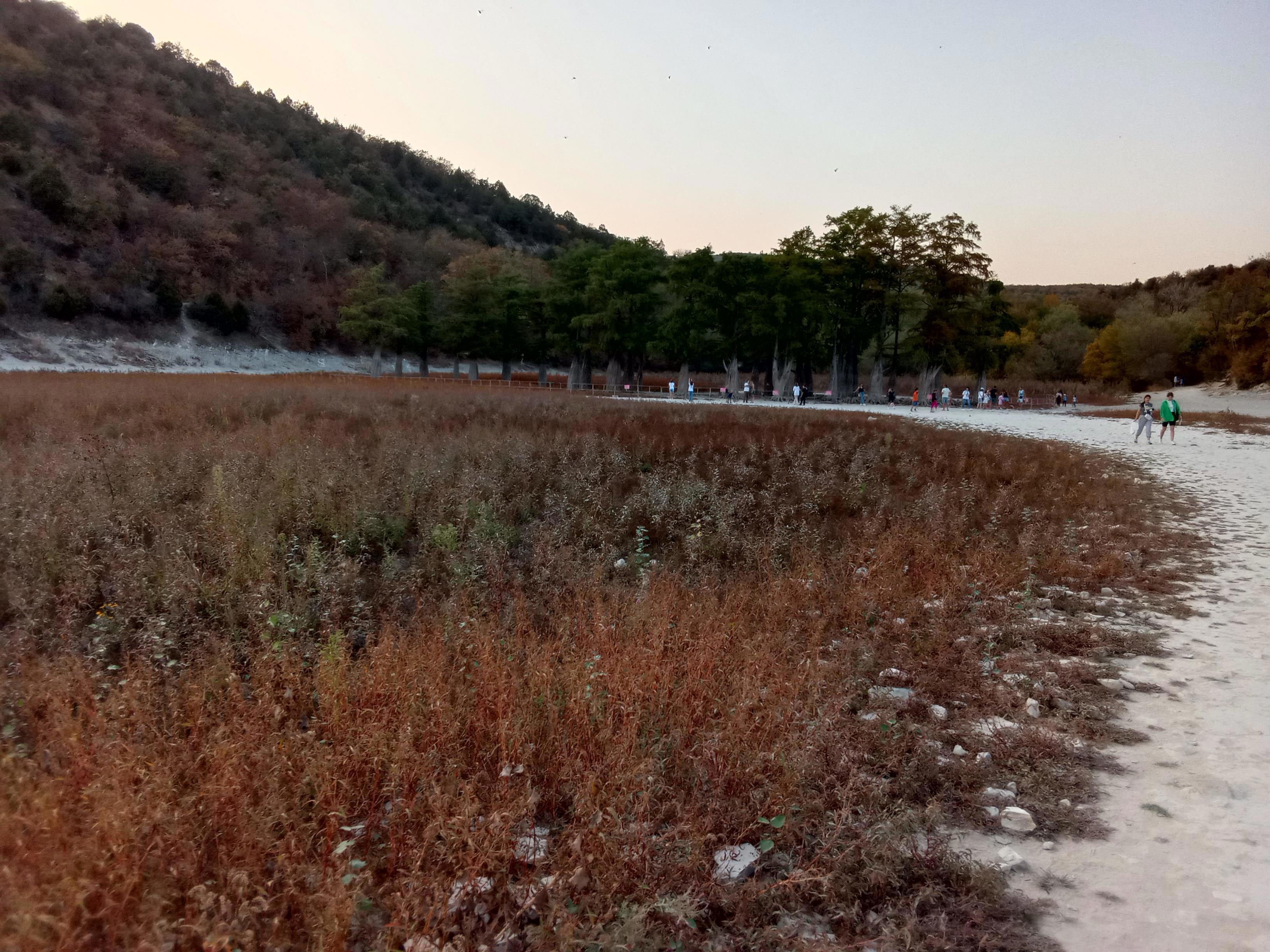 Идя дальше, вот и увидел траву, растущую на дне. Оказалось, это действительно так. Вон там дальше кипарисы стоят. Скоро и к ним подойду.