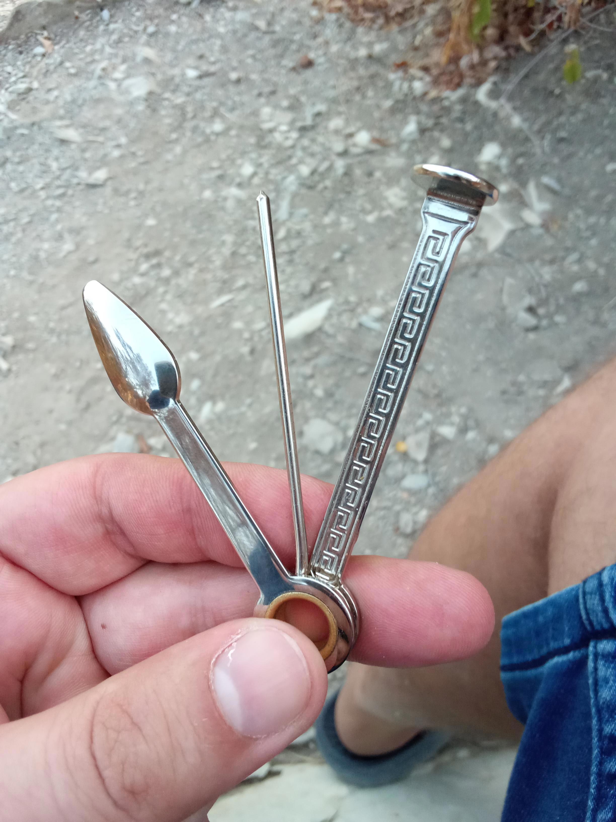 Тройник. Нужная штука. В тройнике: топталка, шило и лопатка. Я пользуюсь только топталкой и шилом. Лопатка без надобности — табак забиваю в трубку пальцами.