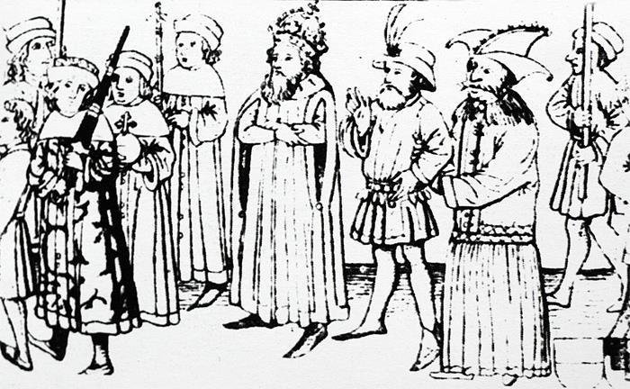 — император, он же король венгерский, чешский и римский (на рисунке в сопровождении венгров и поляков);