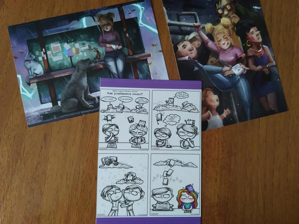 А теперь рассмотрим открытки и читательские стикеры.