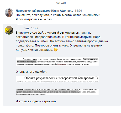 Решила я отнести к редактору первую часть книги. После долгих скитаний по интернету выбрала литературного редактора Юлию Афонасьеву. Красивая страничка вк, много положительных отзывов, отличный послужной список... Почему бы нет?
