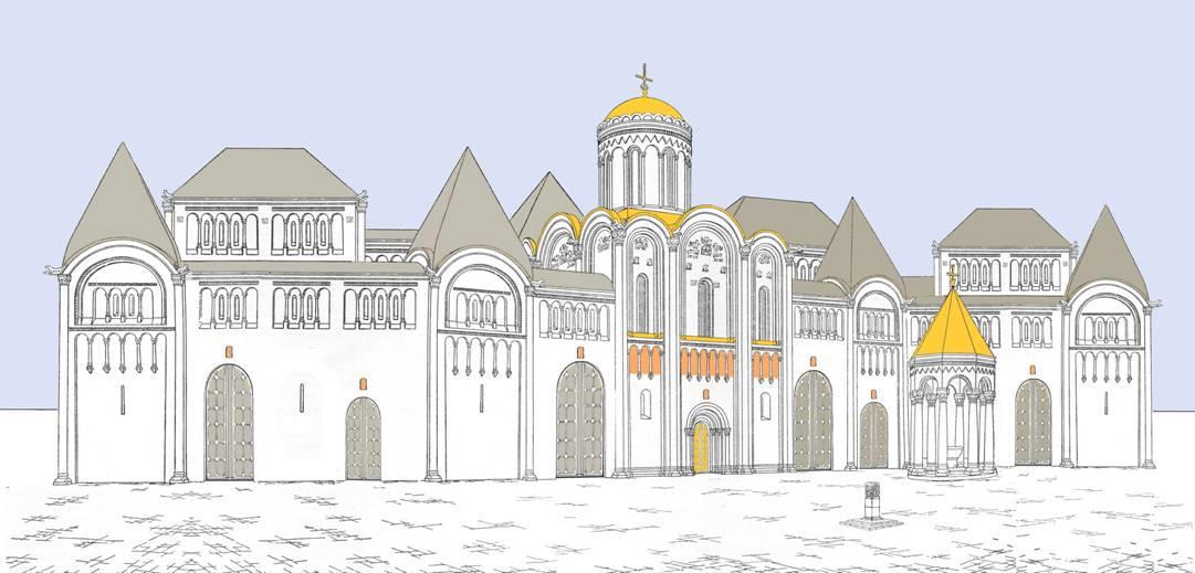 Великокняжеский дворец поставили на высоком холме, который с юга защищала Клязьма или один из её рукавов или стариц. Белокаменные палаты соединялись крытыми переходами с церковью Рождества Богородицы. Весь комплекс зданий защищали каменные стены, что было большой редкостью на Руси в те времена.