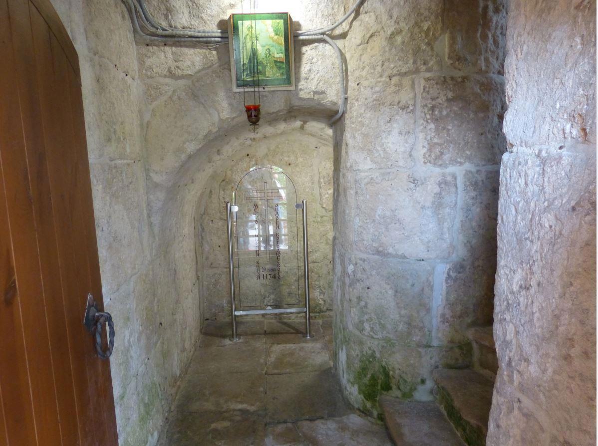 В "Повести об убиении Андрея Боголюбского" указывается, в каком месте замка в ночь с 28 на 29 июня 1174 года был убит князь Андрей Боголюбский: "за лестничным столбом" (за столпомъ вьсходнымь). Так уж вышло, что именно эта часть дворца сохранилась до наших дней. Это закуток под лестницей, ведущей на колокольню. Именно там истекающего кровью князя добили заговорщики. Вот это место: