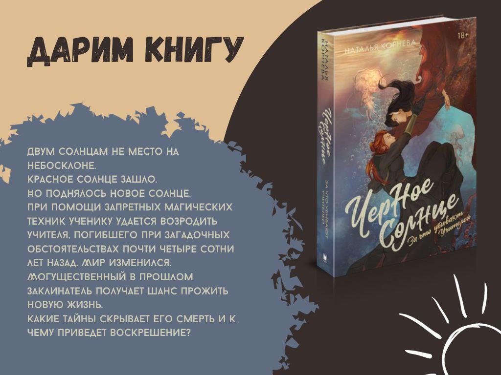 Автор: Наталья КорневаДрузья, в телеграм-канале замечательного книжного блогера @natyabook стартовал розыгрыш предзаказа на мою книгу «Чёрное Солнце», которая выходит в издательстве АСТ уже в октябре!