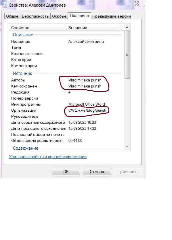 То, что кто-то рылся в моем компе, я обнаружил почти случайно. Просто у некоторых моих вордовских файлов, посвященных АТ, появился другой автор, некий Vladimir aka punsh. И в данных файлов ссылка на «организацию» этого челика, типа его профессиональную берлогу. Вот для примера два скрина: