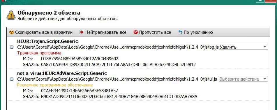 Я как-то сразу понял, что у меня в компе вирус. Использую Доктор Веб, проверки делаю регулярно. Но он ничего не нашел. Тогда я скачал свежую утилиту Каспера KVRT. Ну и вот: