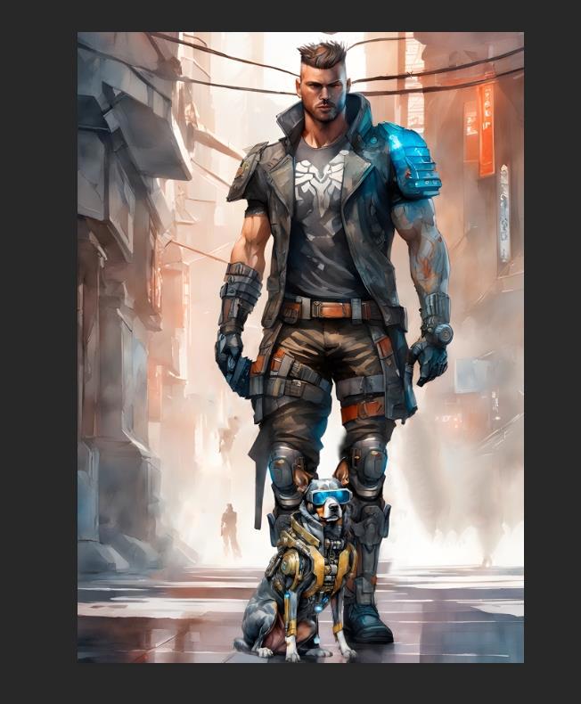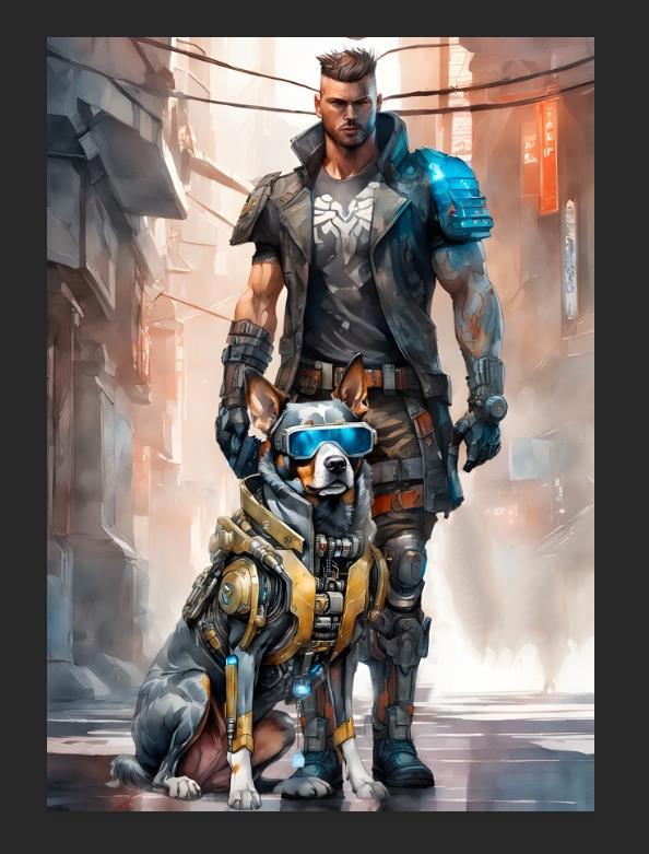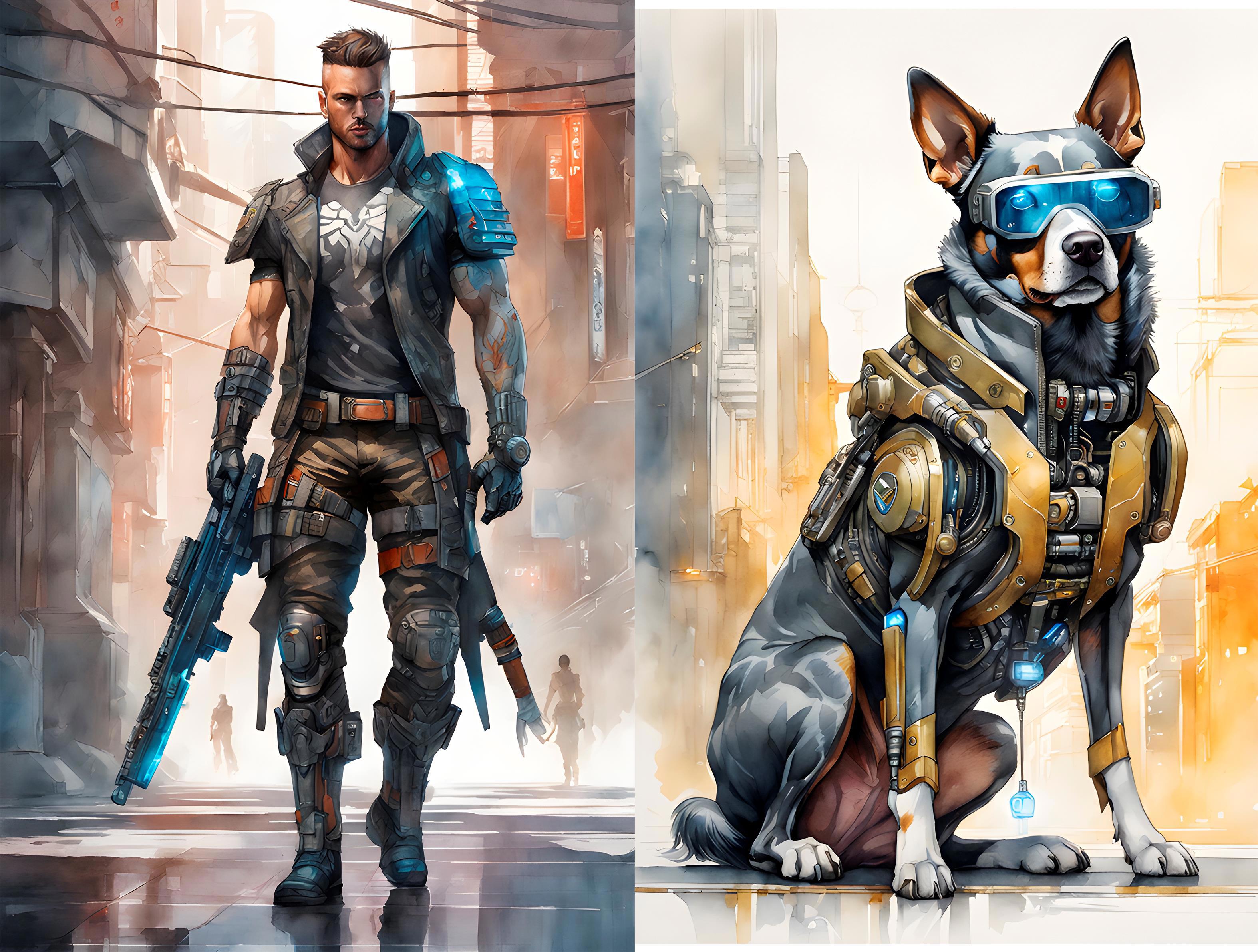 Нужен мужик с собакеном. Можно генерить сразу обоих и перебирать варианты до посинения. Что то всё равно не понравится. Лучше по одному, больше манёвра. Главное что бы в одном стиле.